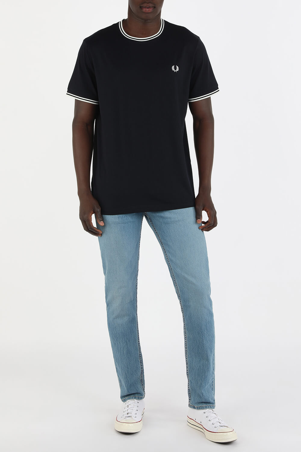 חולצה מוצלחת של בית האופנה הבריטי Fred Perry. החולצה בגזרת טי שירט נינוחה אך קרובה לגוף בצבע כחול נייבי. בצווארון ובשרוולים גימורים סופר שיקיים של פס כפול ולבן ובחזית לוגו המותג האהוב רקום בלבן. פריט מעולה ושימושי גם לשעות היום וגם לשעות הערב עם ג`ינס וסניקרס.