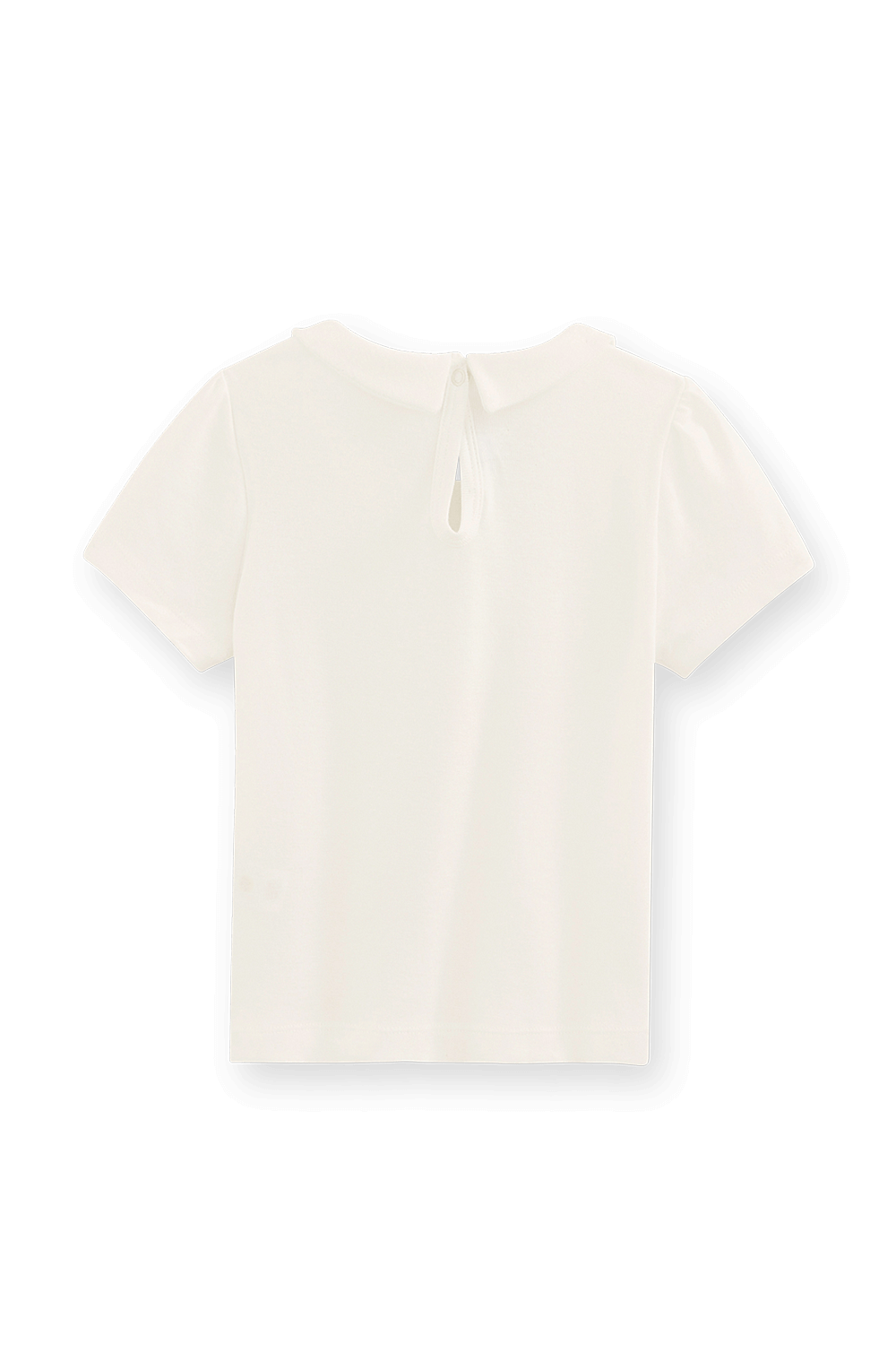 חולצת טי קצרה מבית Petit Bateau עשויה 100% כותנה איכותית ונעימה בצבע לבן בצללית משוחררת וצווארון פיטר פן/