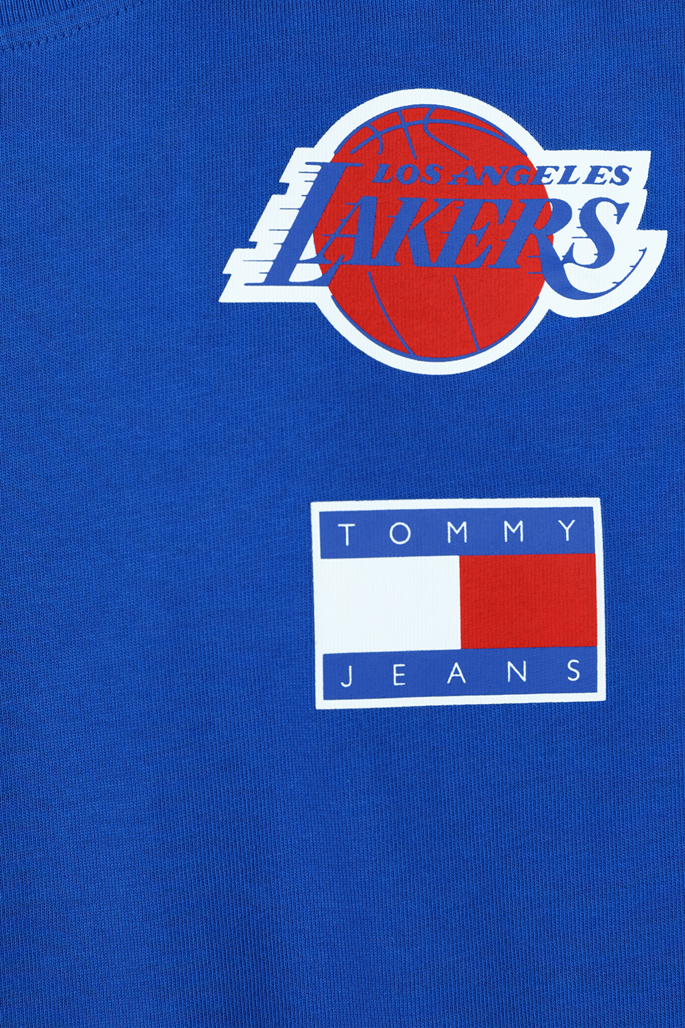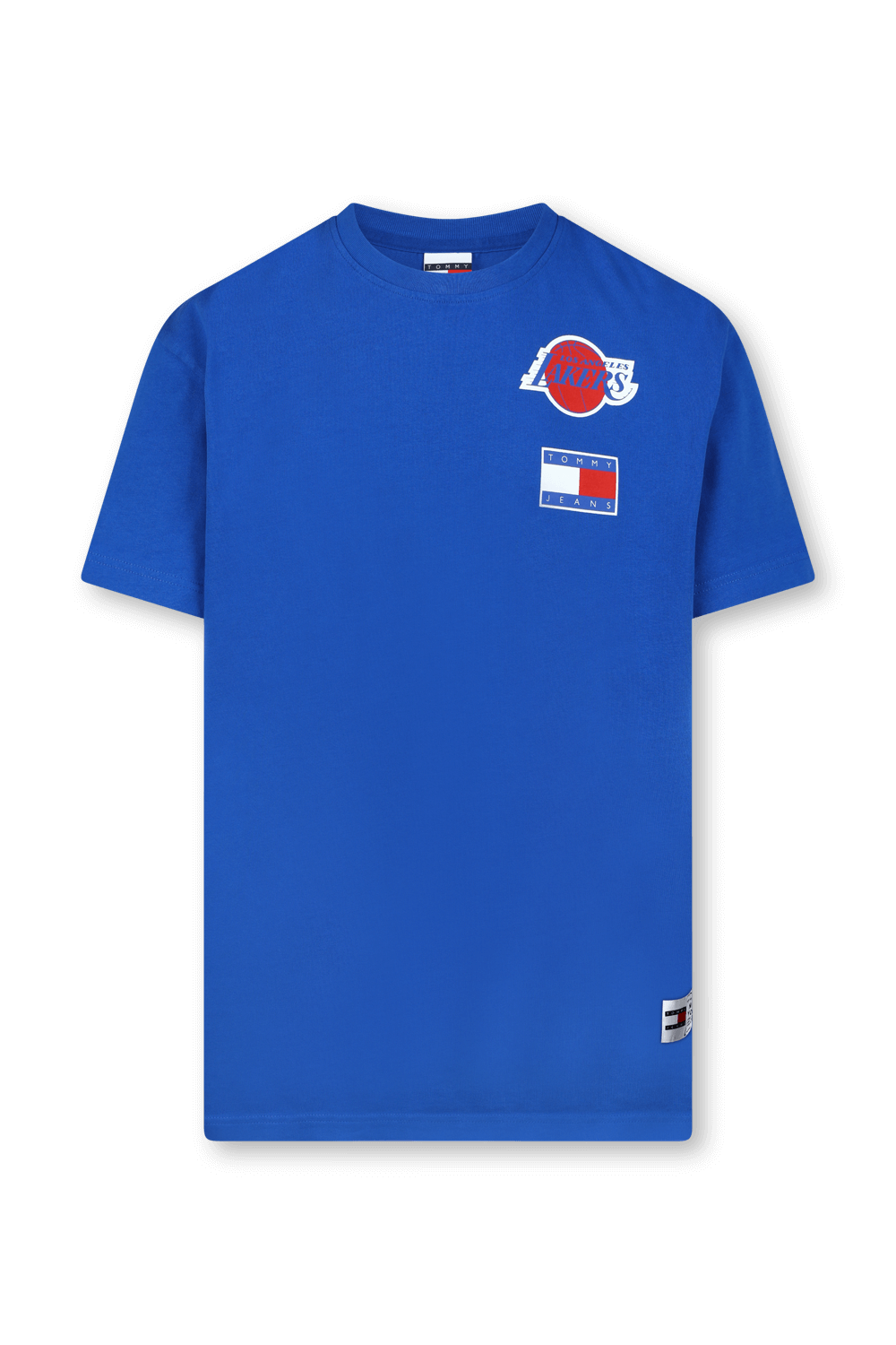 חולצת טי מבית Tommy Hilfiger. זהו דגם העשוי 100% כותנה אורגנית איכותית בגוון כחול עם הדפס המוקדש לקבוצת הכדורסל האגדית לייקרס מליגת ה-NBA. לפריט גזרה ישרה עם צווארון מעוגל ושרוולים קצרים כאשר שם המותג המופיע על החזית חותם את עיצובו השיקי והעדכני של חולצה זו.