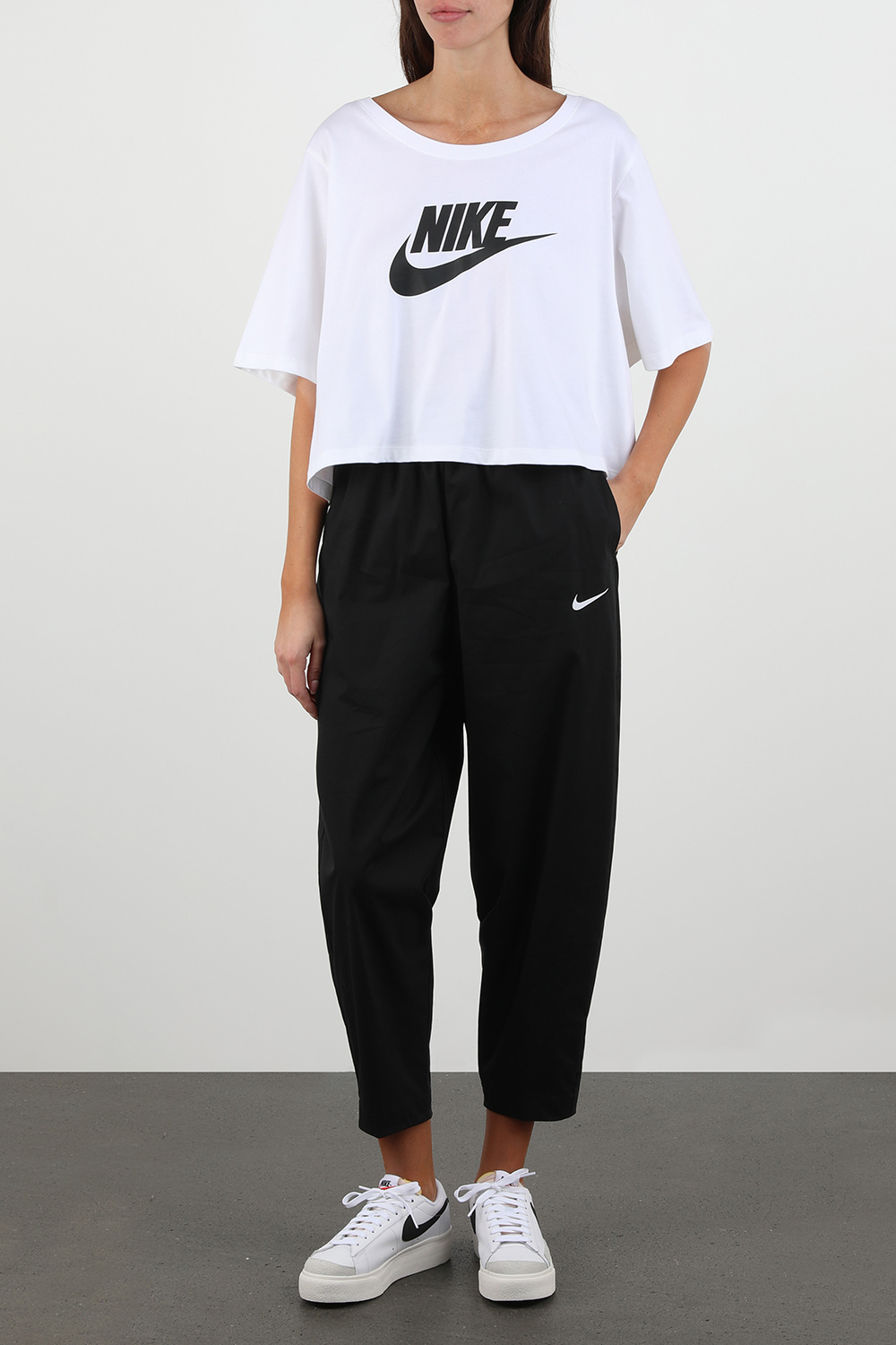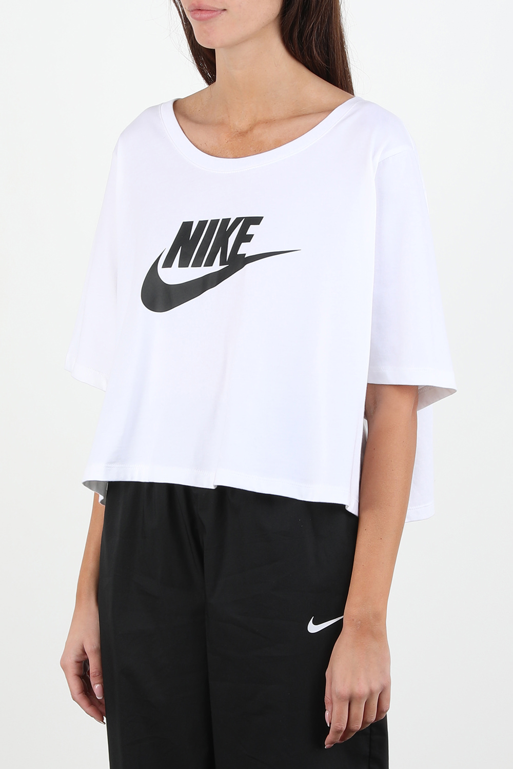 חולצה מבית ענקית הספורט נייקי. זהו דגם העשוי טקטסיל איכותי בגוון לבן. לפריט גזרת ישרה עם שרוולים קצרים וצווארון מעוגל. הלוגו האייקוני של המותג המופיע על החזית חותם את עיצובו העל זמני והשיקי של פריט זה.