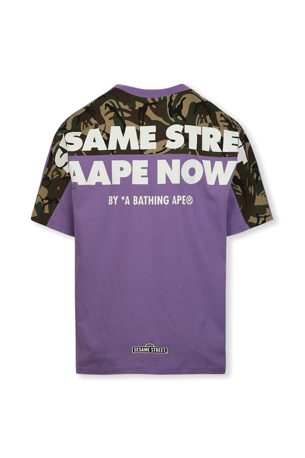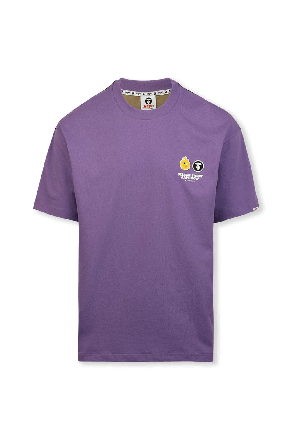 טי שירט בעיצוב מותג הסטריט היפני הרותח AAPE. זהו דגם העשוי 100% כותנה איכותית בגוון סגול כאשר הדפס מלא פאן בהשראת משפחת רחוב שומשום המוכרת מתנוסס על הגב ומופיע גם על החזית. לפריט גזרה ישרה ונינוחה עם שרוולים קצרים וצווארון עגול. פריט היסטרי שיהפוך כל לוק לסופר קולי ועדכני.