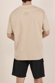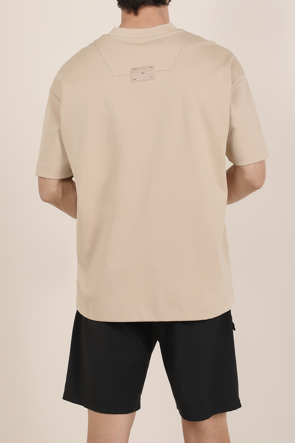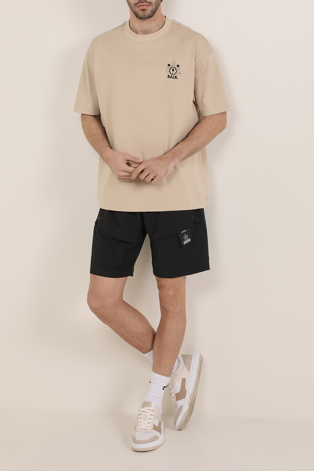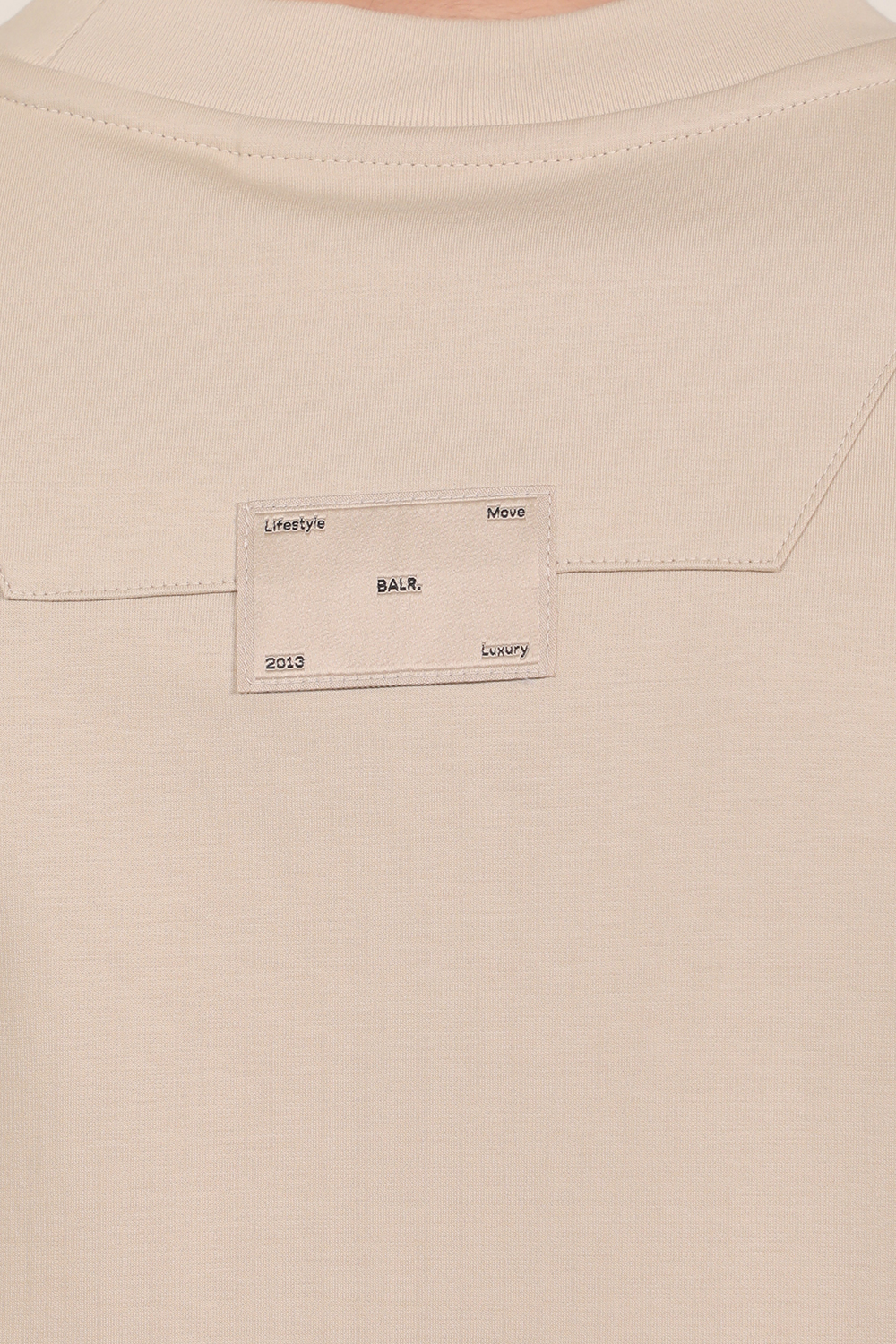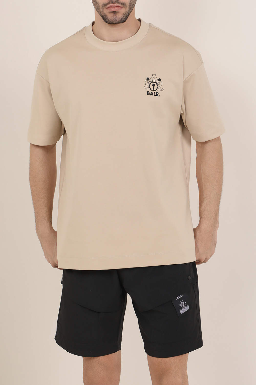 חולצת טי בגזרה משוחררת מבית Balr, עשויה כותנה מעט אלסטית בצבע בז', עם רקמת לוגו מקדימה ופאץ' מאחור.