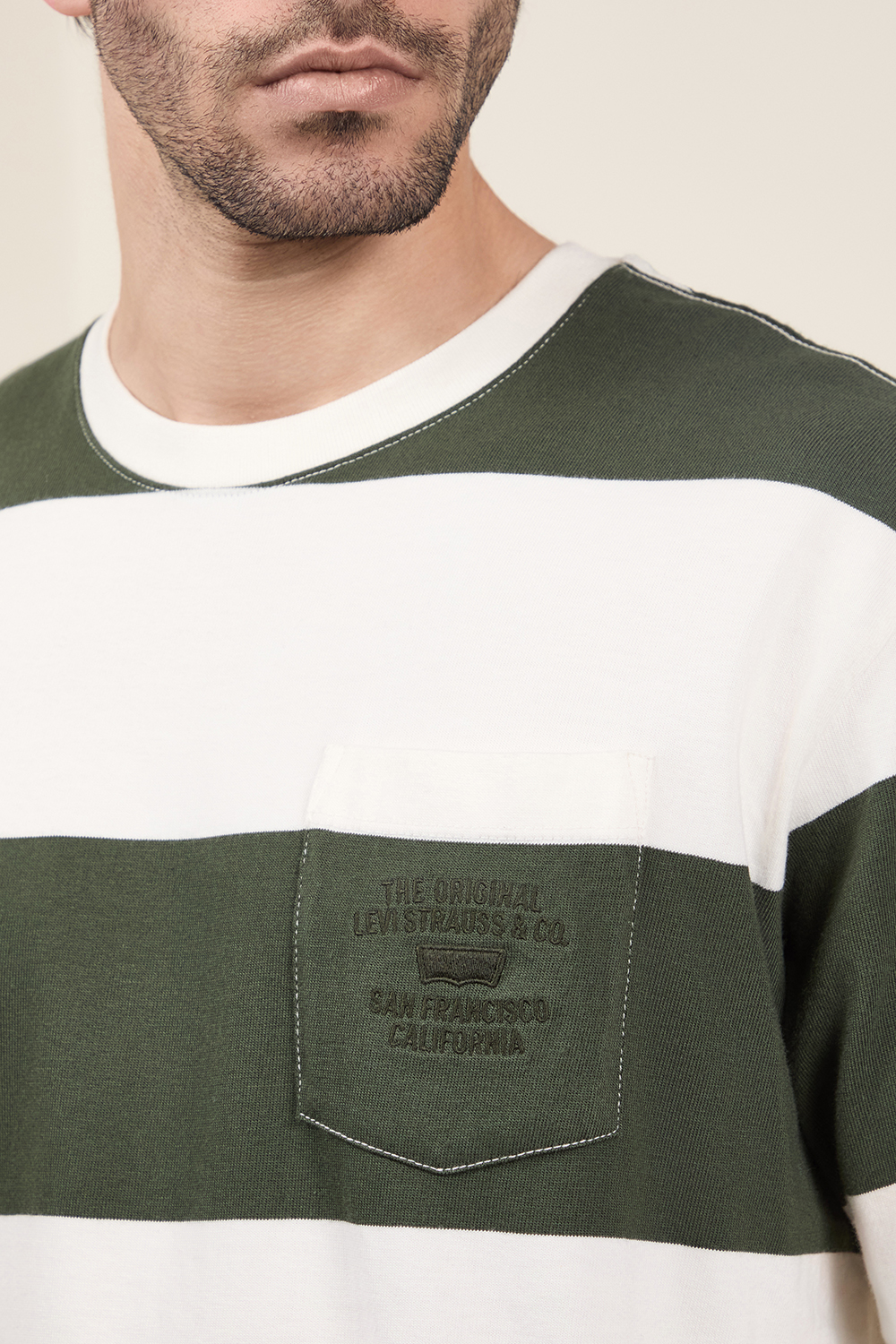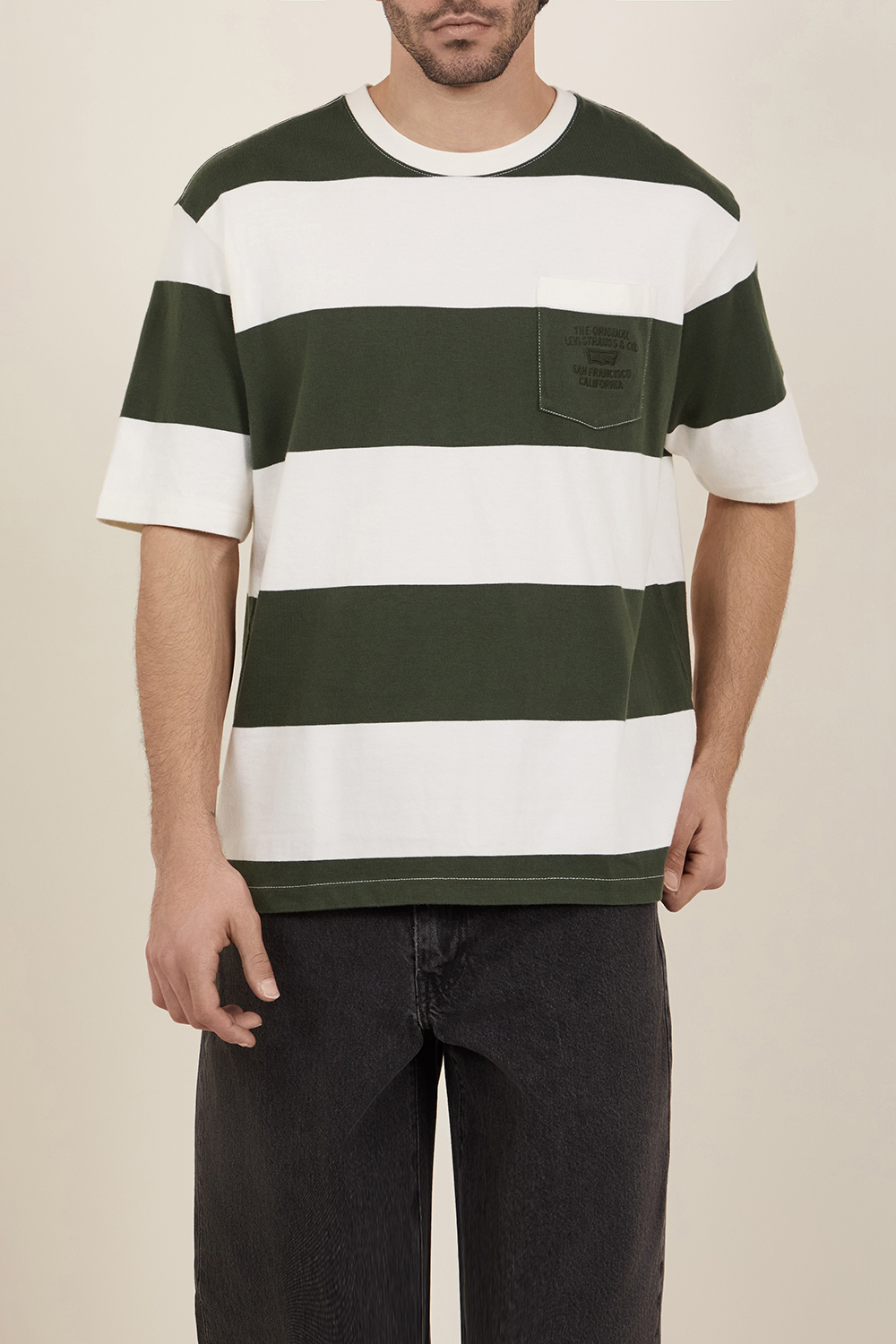 חולצת טי בגזרה משוחררת מבית Levi's, עשויה כותנה בדוגמת פסים ירוק-לבן.