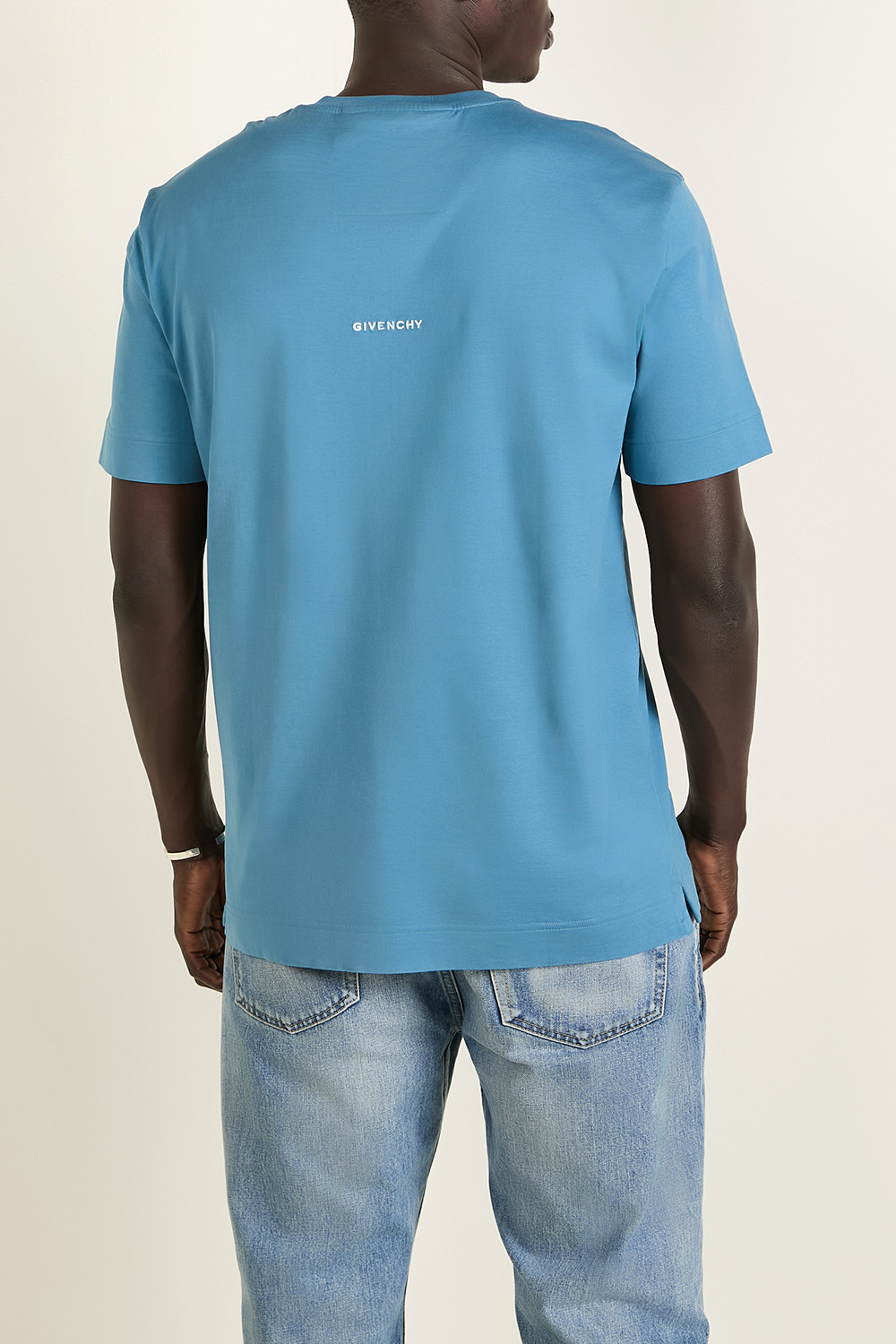 חולצת טי בגזרת סלים מבית Givenchy, עשויה כותנה בצבע כחול עם צווארון מעוגל בשילוב רקמת 4G במרכז. צבעה הקיצי של החולצה יהיה מושלם בחופשה הבאה שלך.