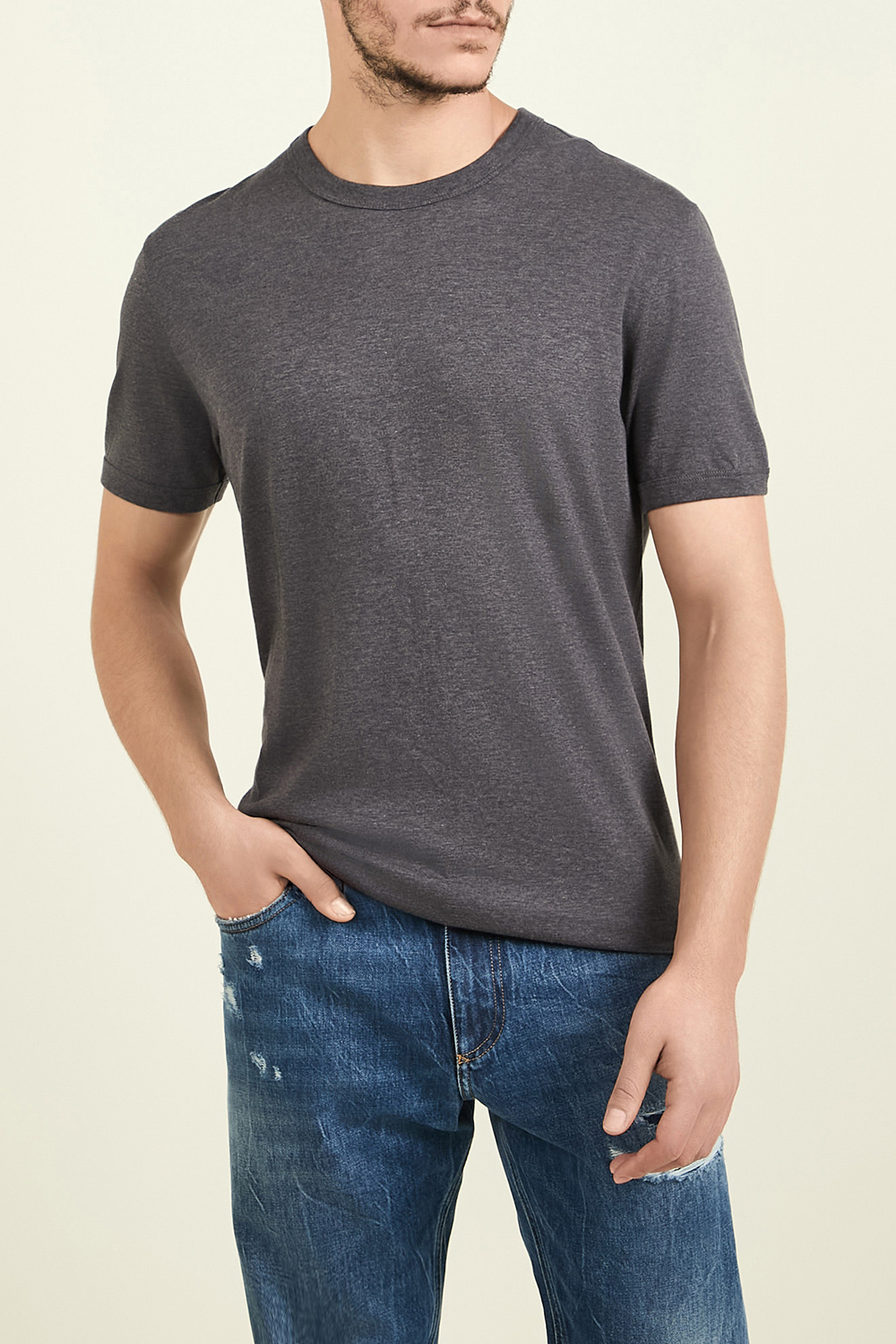 חולצת טי קלאסית מבית Dolce&Gabbana, תוצרת איטליה, עשויה כותנה רכה ונעימה בצבע אפור בשילוב צווארון מעוגל עם פאץ' לוגו.