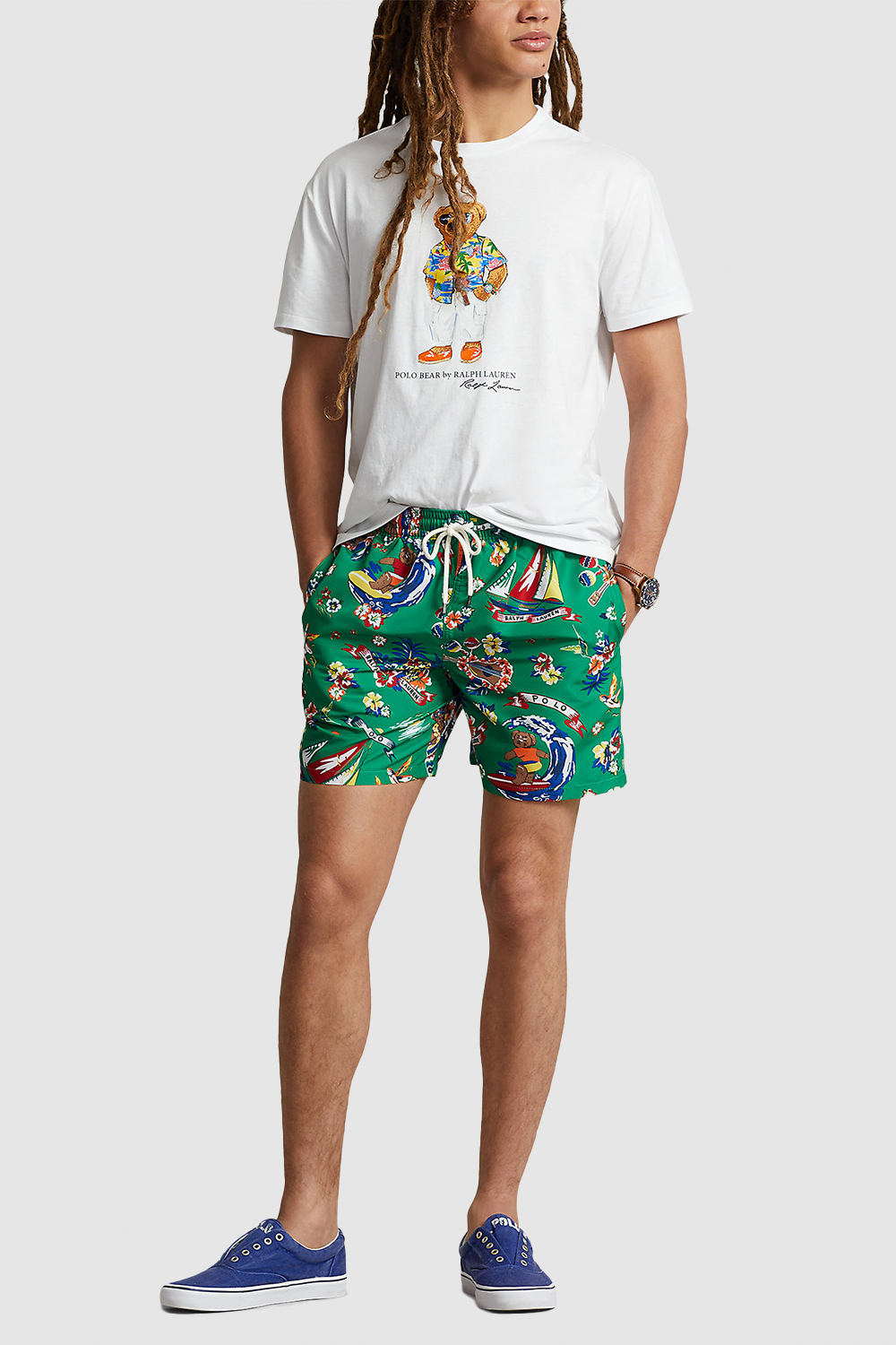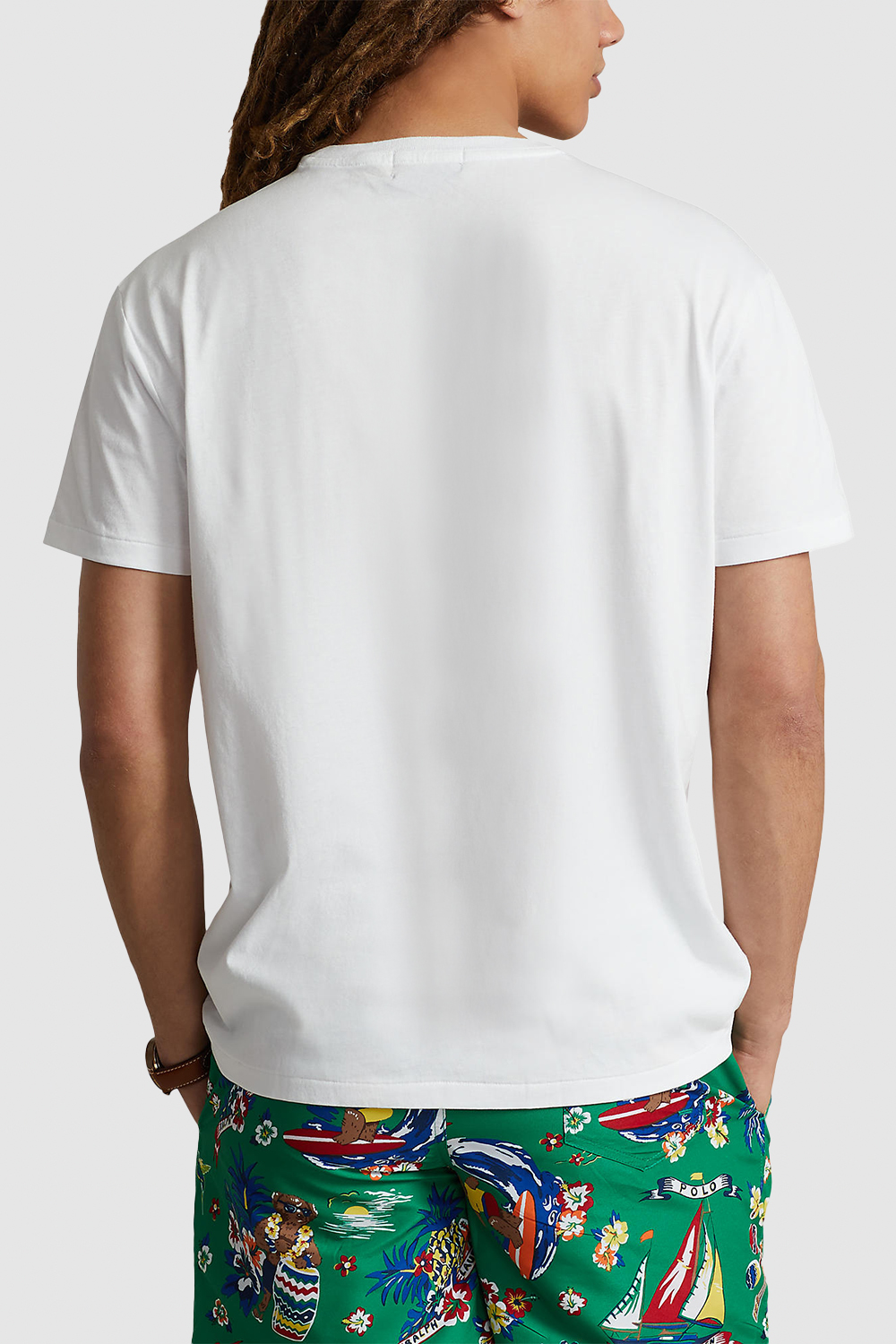 חולצת טי מבית Polo Ralph Lauren, עשויה כותנה בצבע לבן עם צווארון מעוגל בשילוב הדפס הדובי האייקוני.