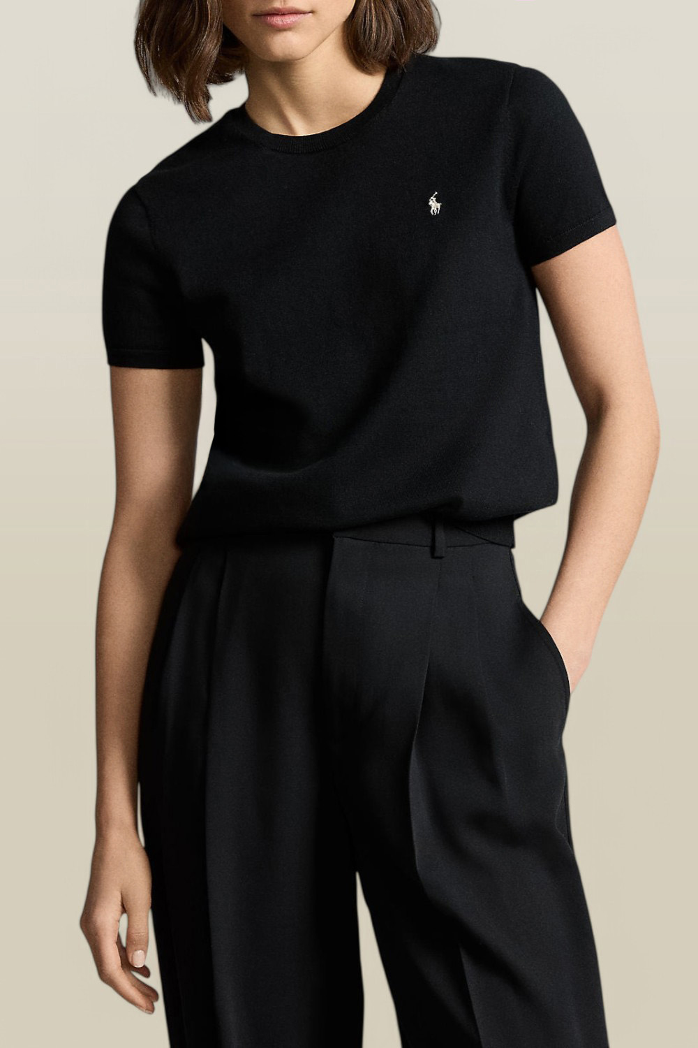 חולצת טי מבית Polo Ralph Lauren, עשויה כותנה עם מעט ניילון בצבע שחור.