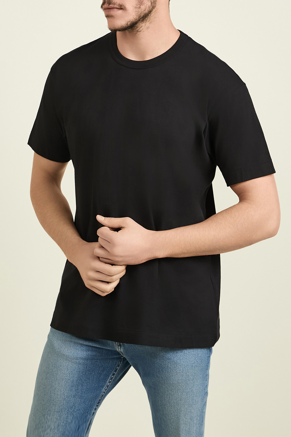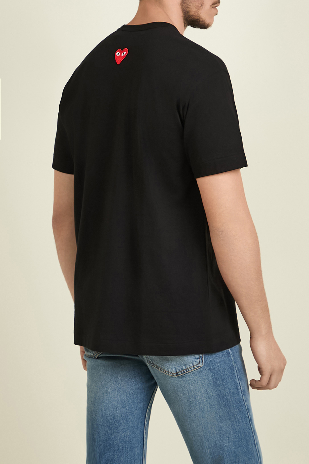 חולצת טי מתוך קו PLAY של Comme Des Garcons. היא עשויה כותנה בצבע שחור עם צווארון מעוגל ולוגו פאץ' של הלב האייקוני בצידה האחורי.