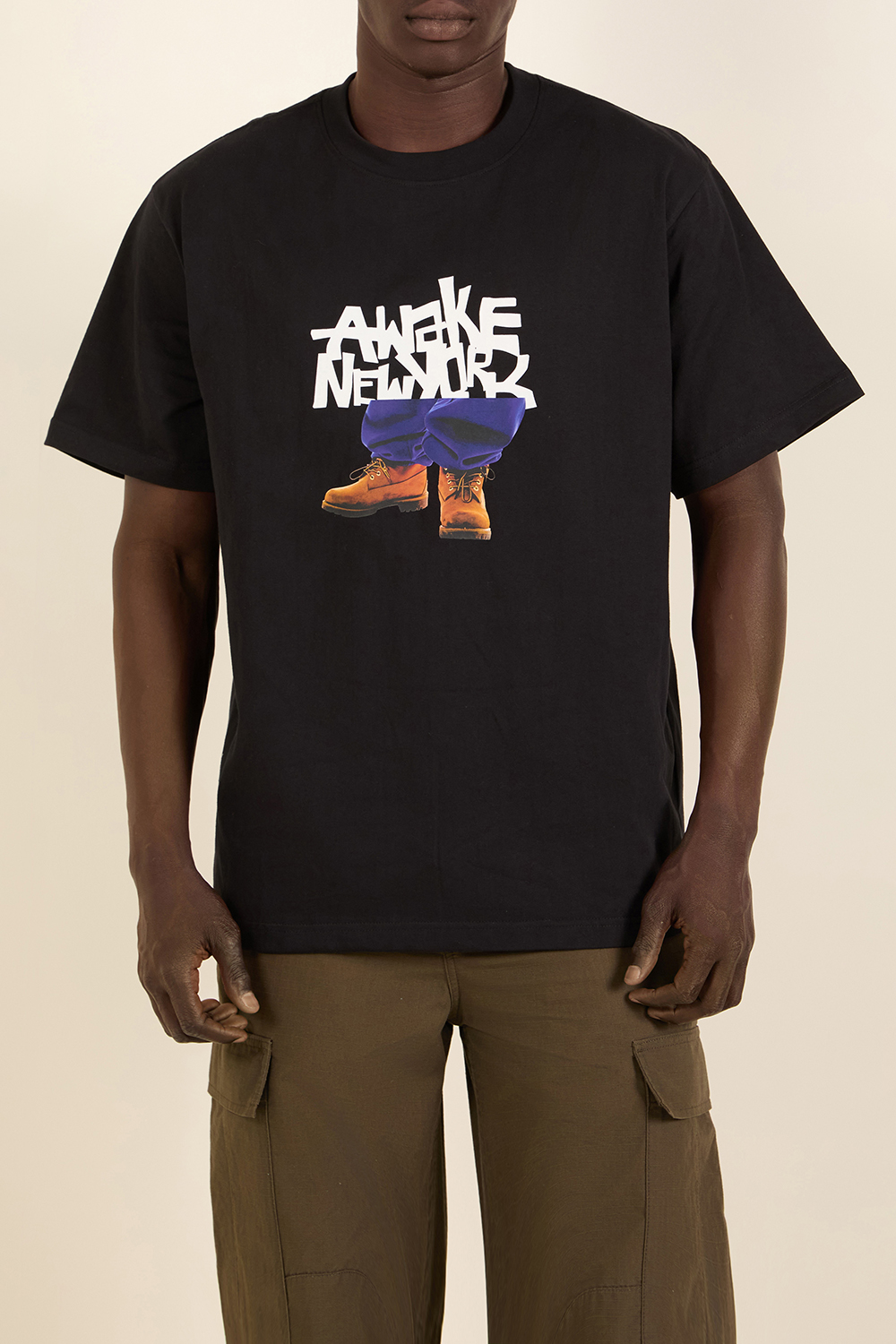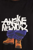 חולצת טי מבית Awake, עשויה מכותנה בצבע שחור בשילוב הדפס גרפי עם לוגו המותג.