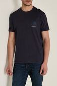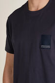 חולצת טי Must Have בכל ארון מבית Armani Exchange, עשויה כותנה בצבע כחול כהה בשילוב צווארון מעוגל עם הדפס לוגו המותג בצד החזה.