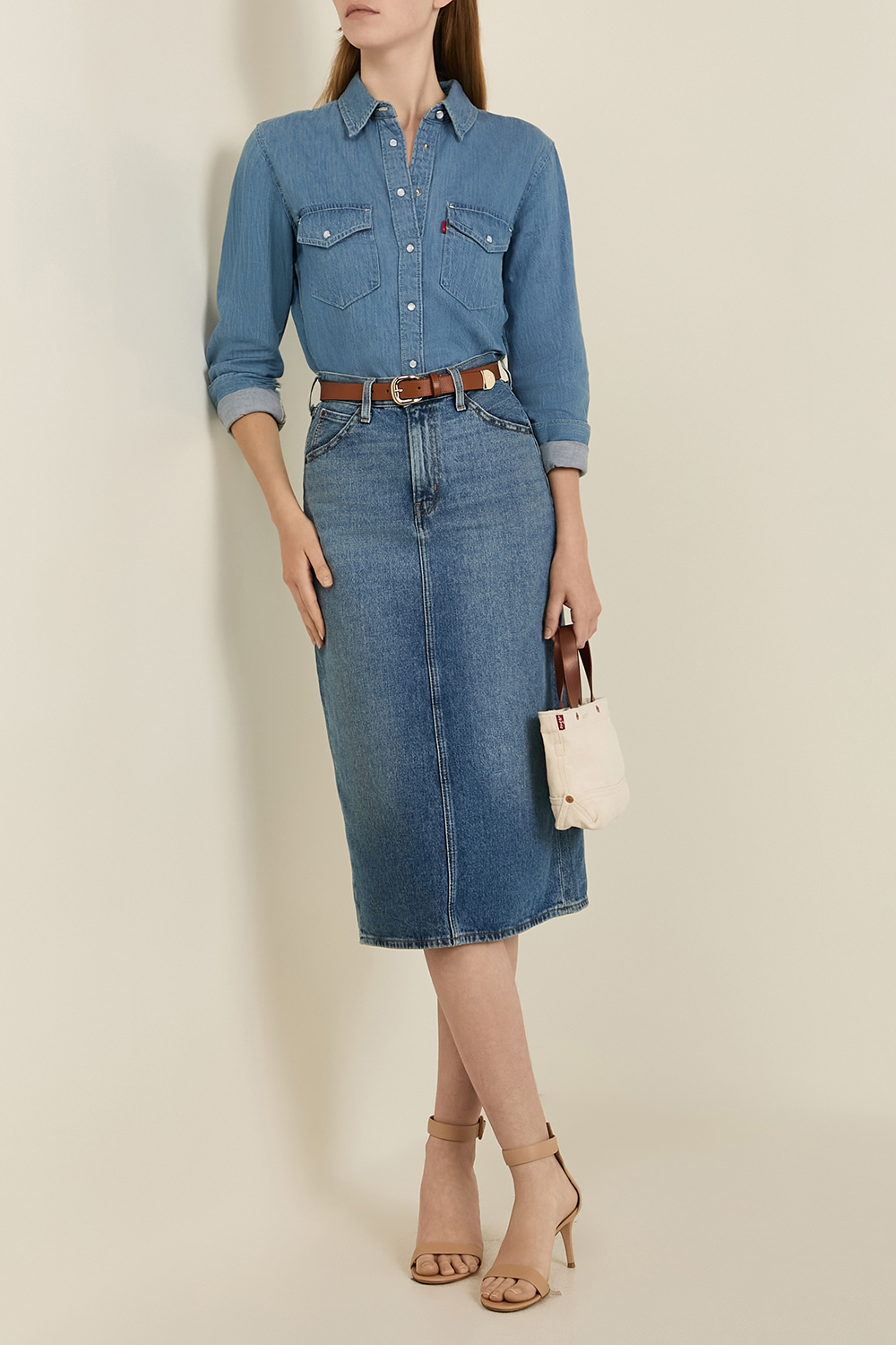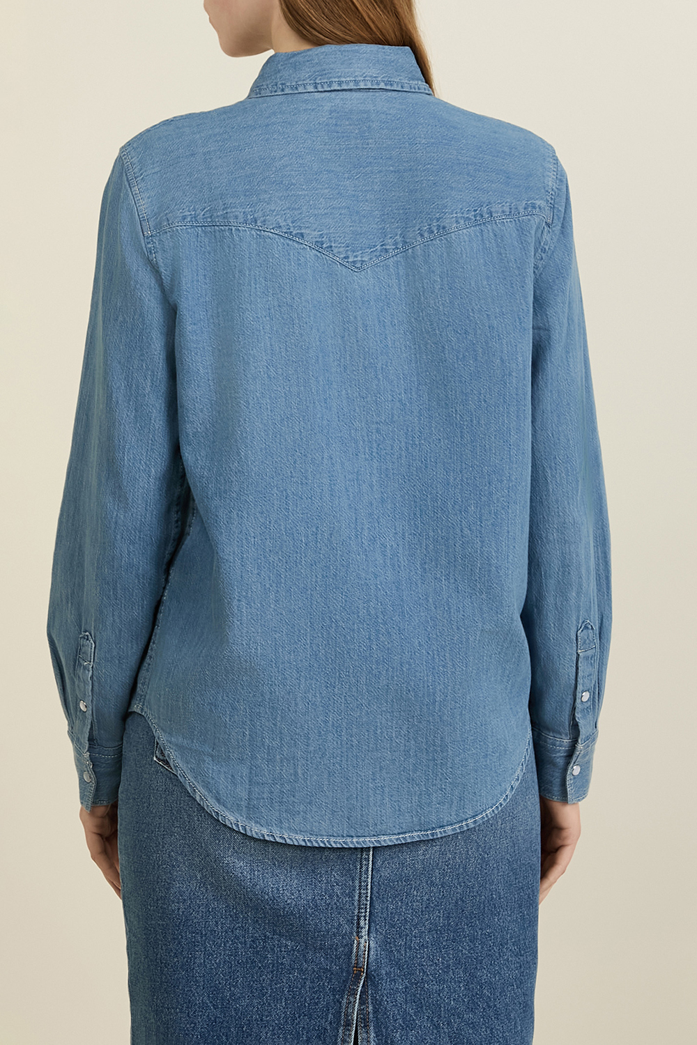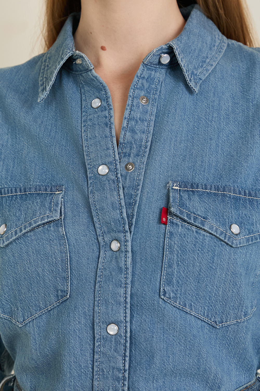 חולצת כפתורים Western Iconic מבית Levi's, המעוצבת בסגון המערב הפרוע. עשוייה בד רך, קל ונושם מפשתן וכותנת דנים בצבע כחול, עם כיסים בסיומת מחודדת ובסגירת כפתורי תיק תק מעוצבים.