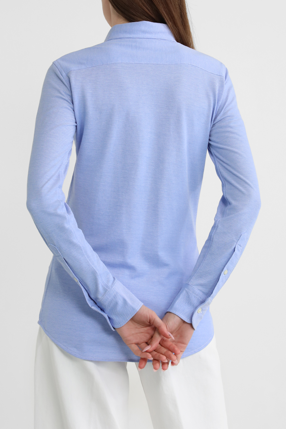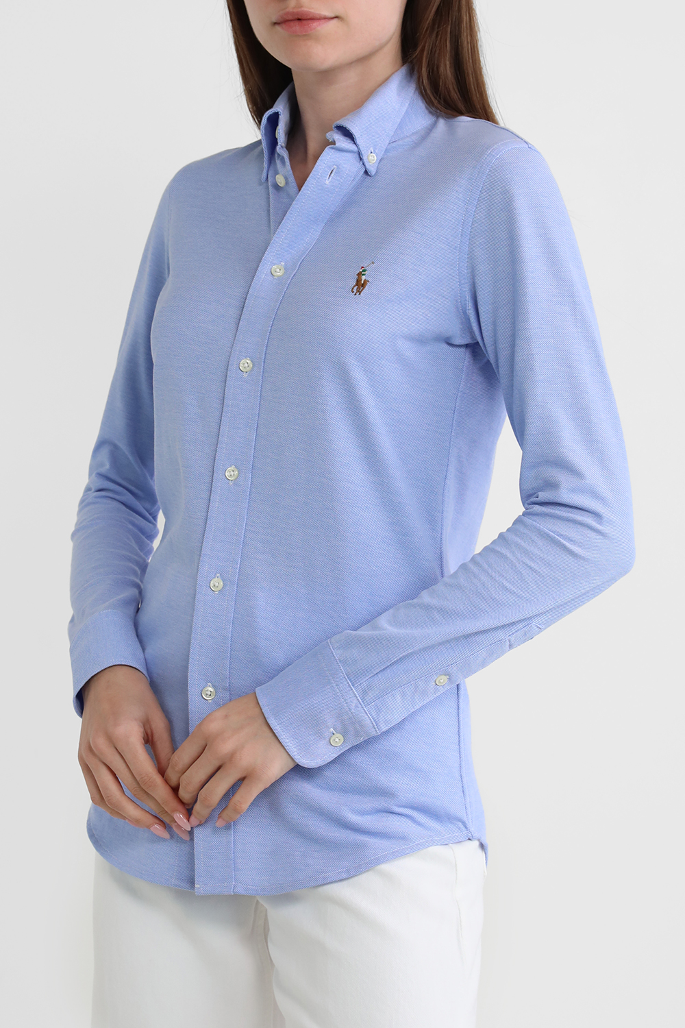 חולצת כפתורים בגזרת סלים של בית האופנה האמריקאי Polo Ralph Lauren. הדגם עשוי 100% כותנה בצבע כחול כאשר לוגו הפרש האייקוני רקום בחזה.