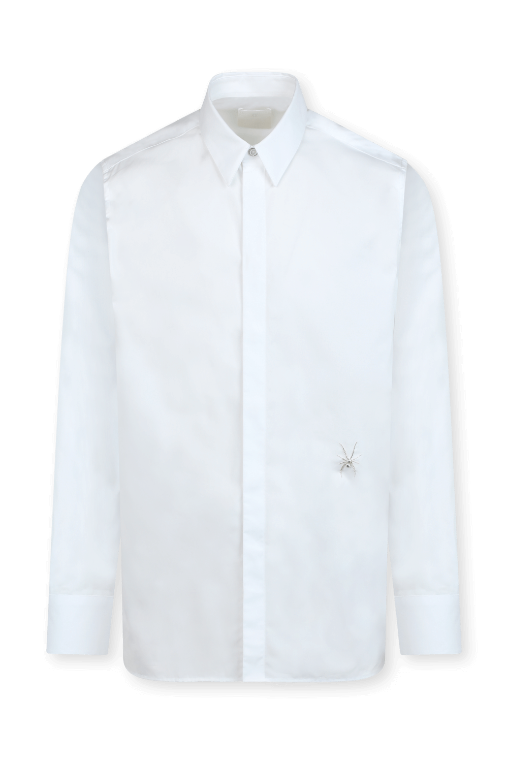 חולצה מכופתרת לבנה בעיצוב בית האופנה הצרפתי הנחשק GIVENCHY. דגם קלאסי ונצחי עשוי 100% כותנה איכותית לכדי צללית סלים דקה ומחמיאה. אלמנט מטאלי בצורת עכביש מוטבע בחזית ומעניק טוייסט עדכנ לפריט. שלב אותו עם גינס או בשילוב חליפה מבית המותג.