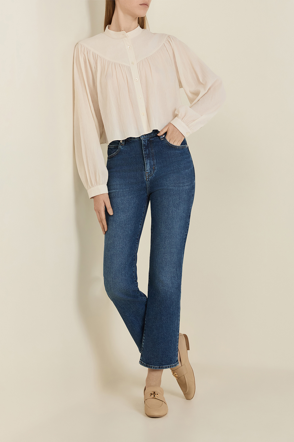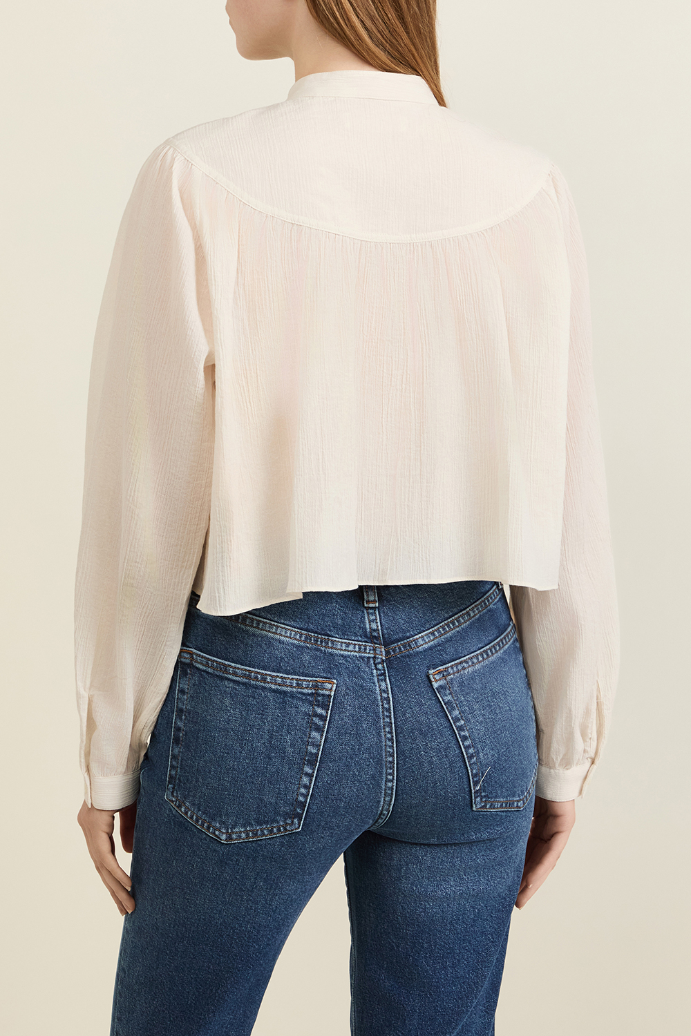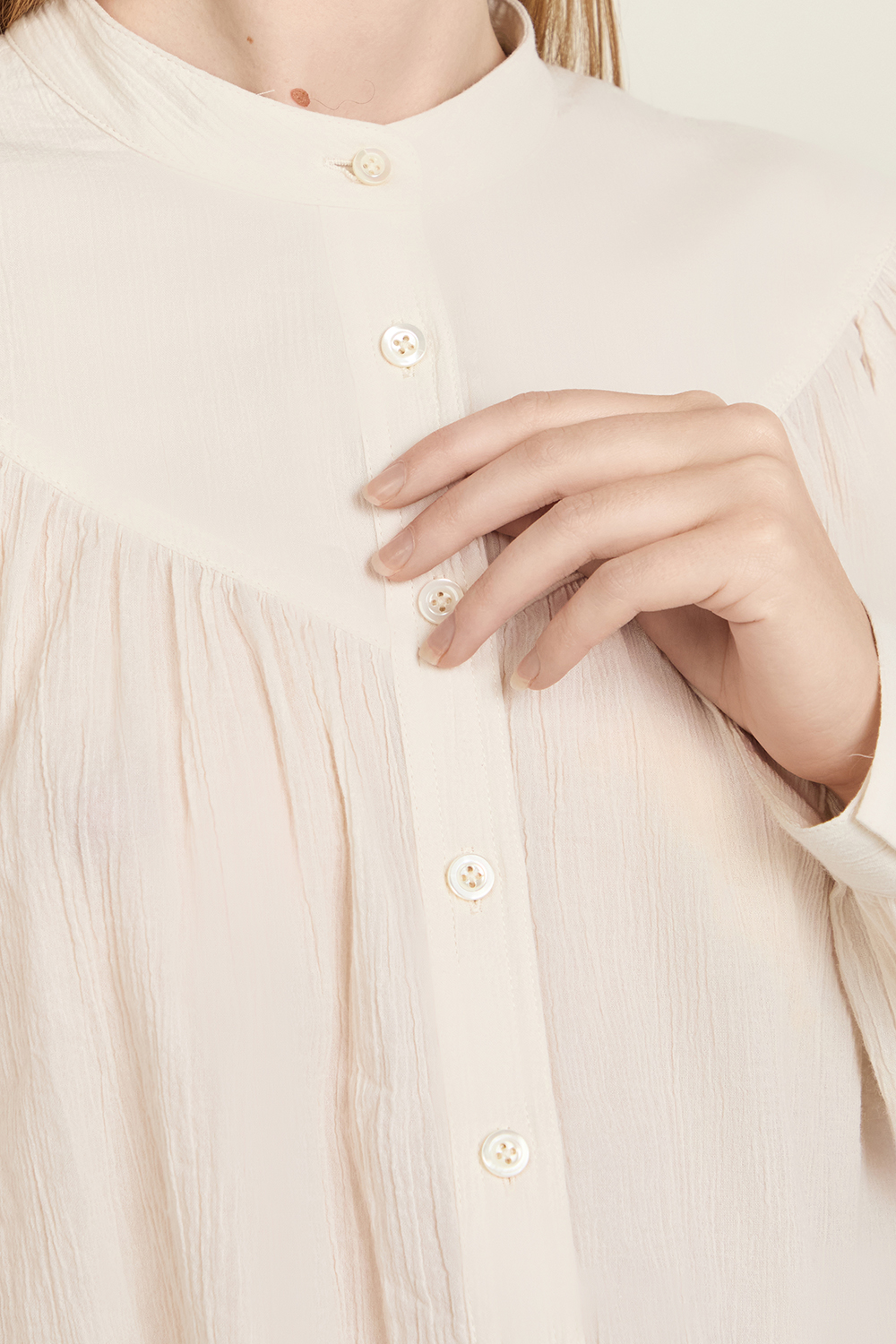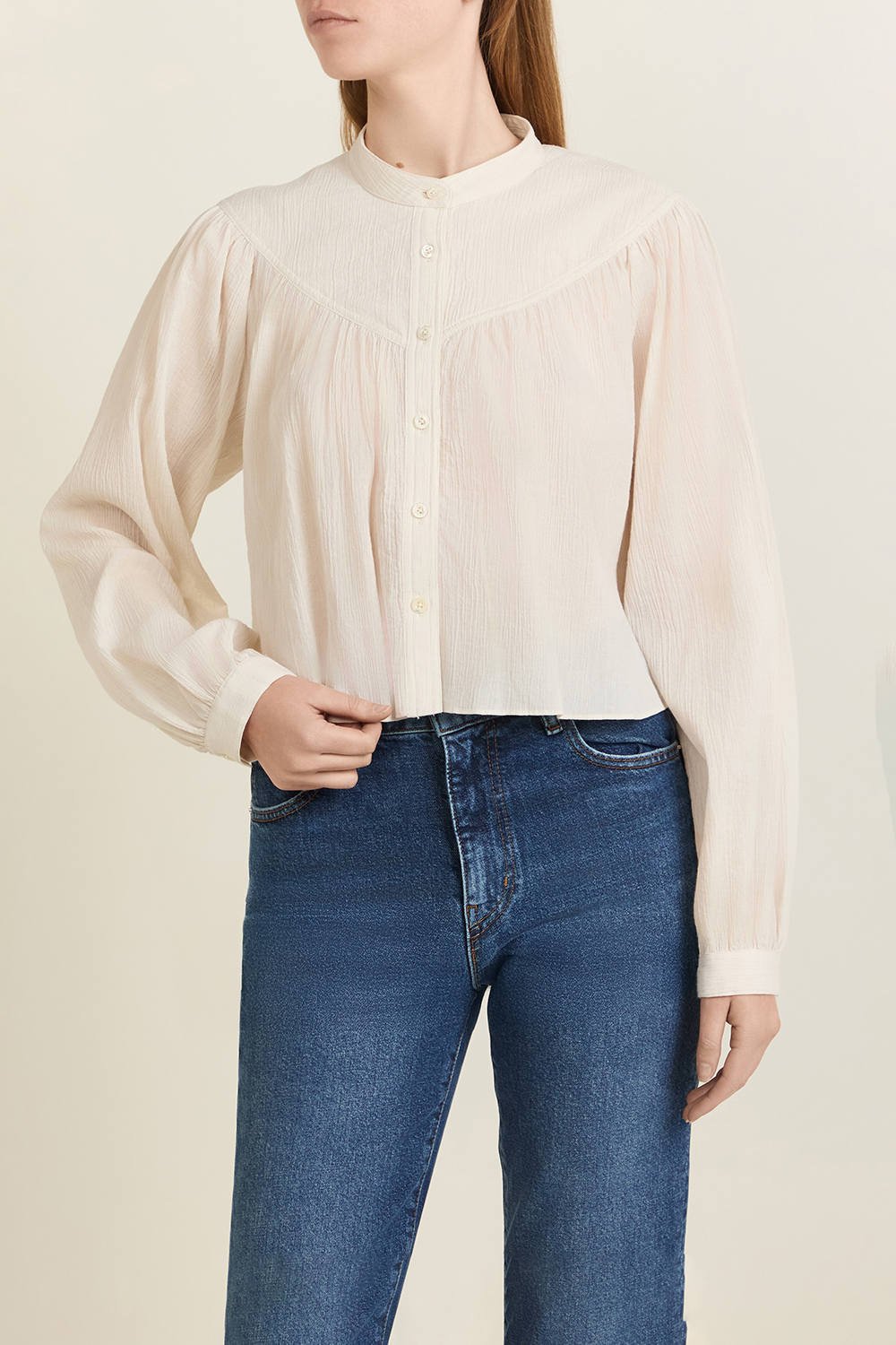 חולצת כפתורים The Swing Blouse מבית Frame, עשויה כותנה קרפ בצבע קרם בגזרת כיווצים.