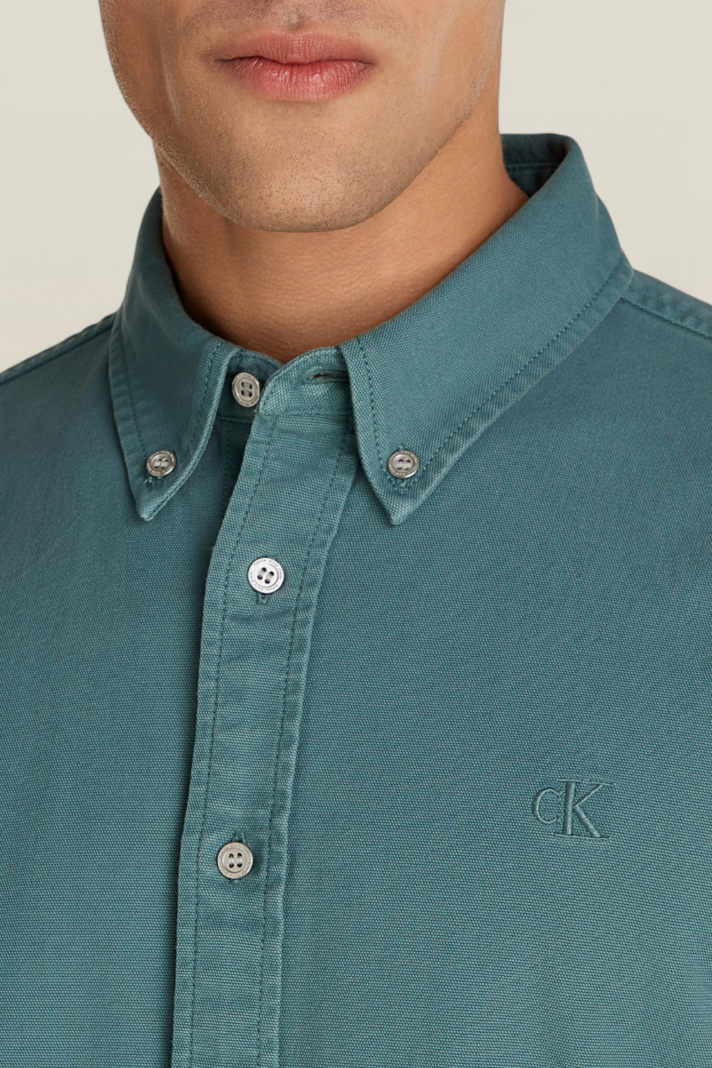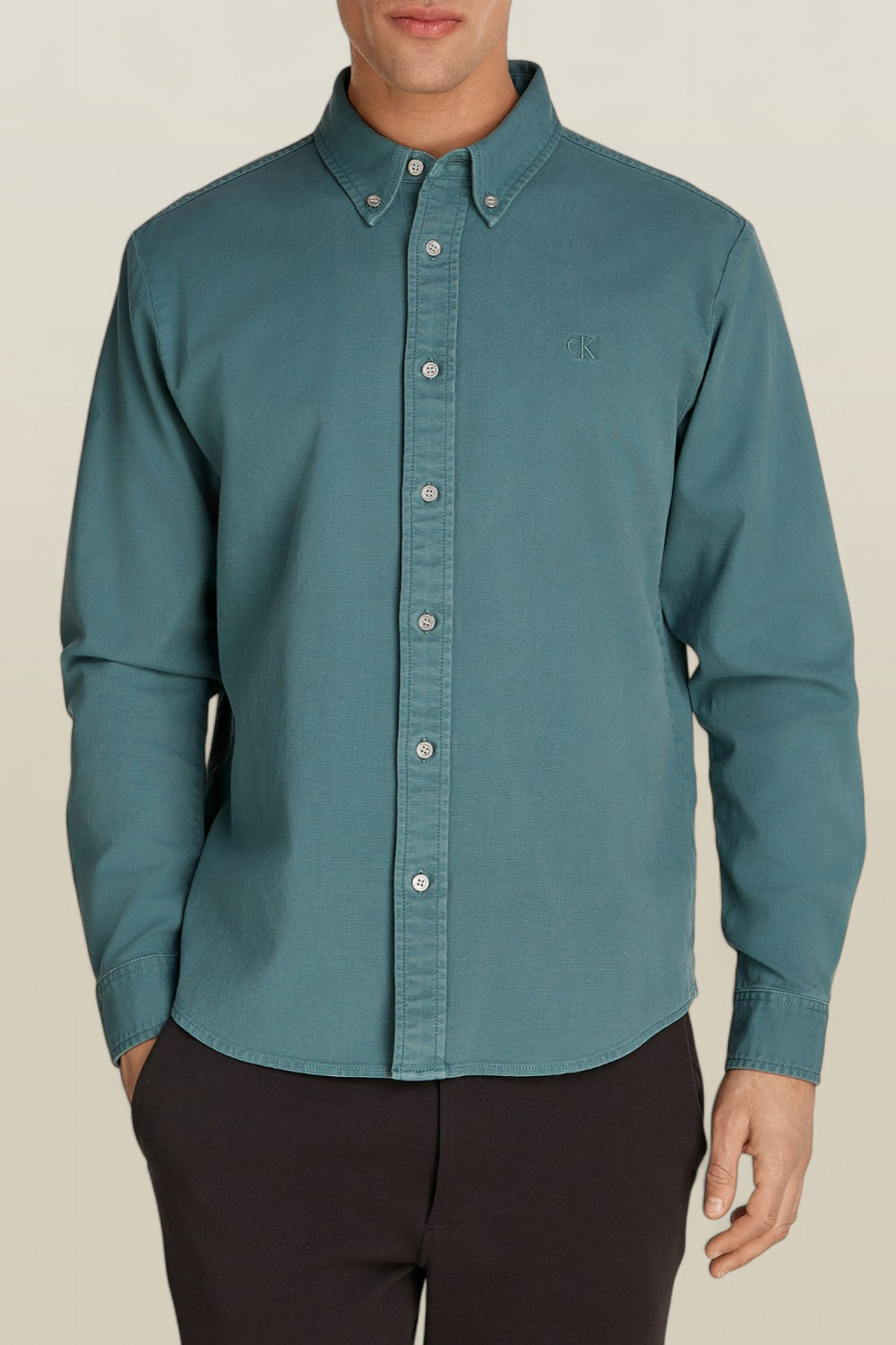 חולצה מכופתרת בגזרה רגילה מבית Calvin Klein, עשויה כותנה ממוחזרת בצבע כחול.