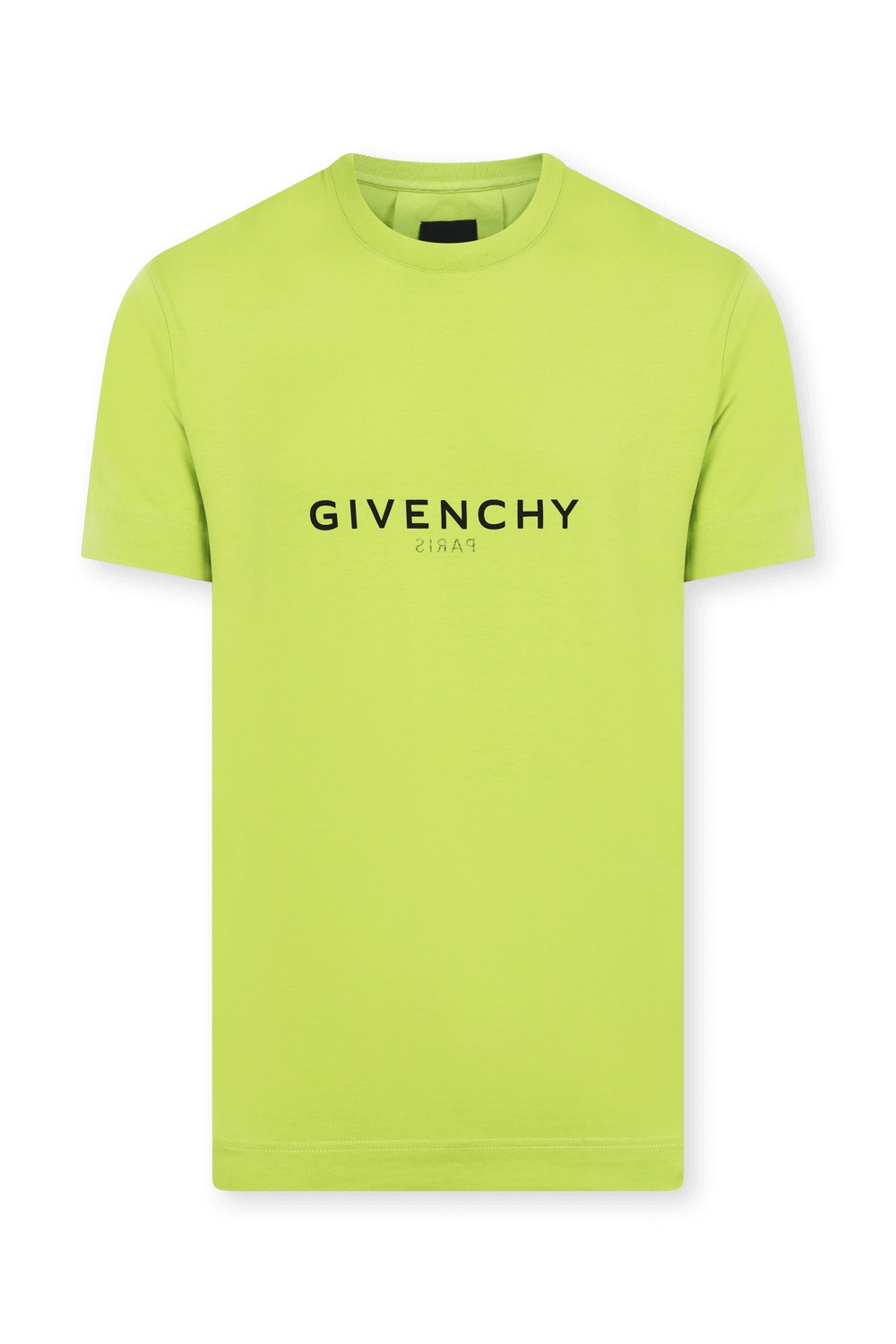 חולצת טי בעיצוב בית האופנה היוקרתי Givenchy, המעוצבת בגזרת סלים מחמיאה בעודה עשויה 100% כותנה בגוון ירוק. לחולצה שרוולים קצרים וצווארון עגול, ולה הדפס לוגו באפקט הפוך בחזית ומאחור בגוון שחור.