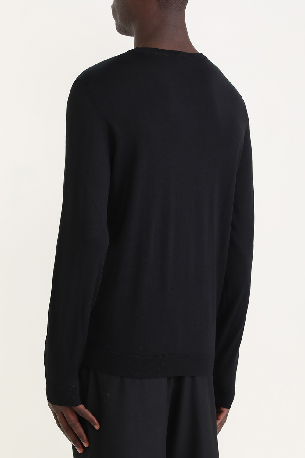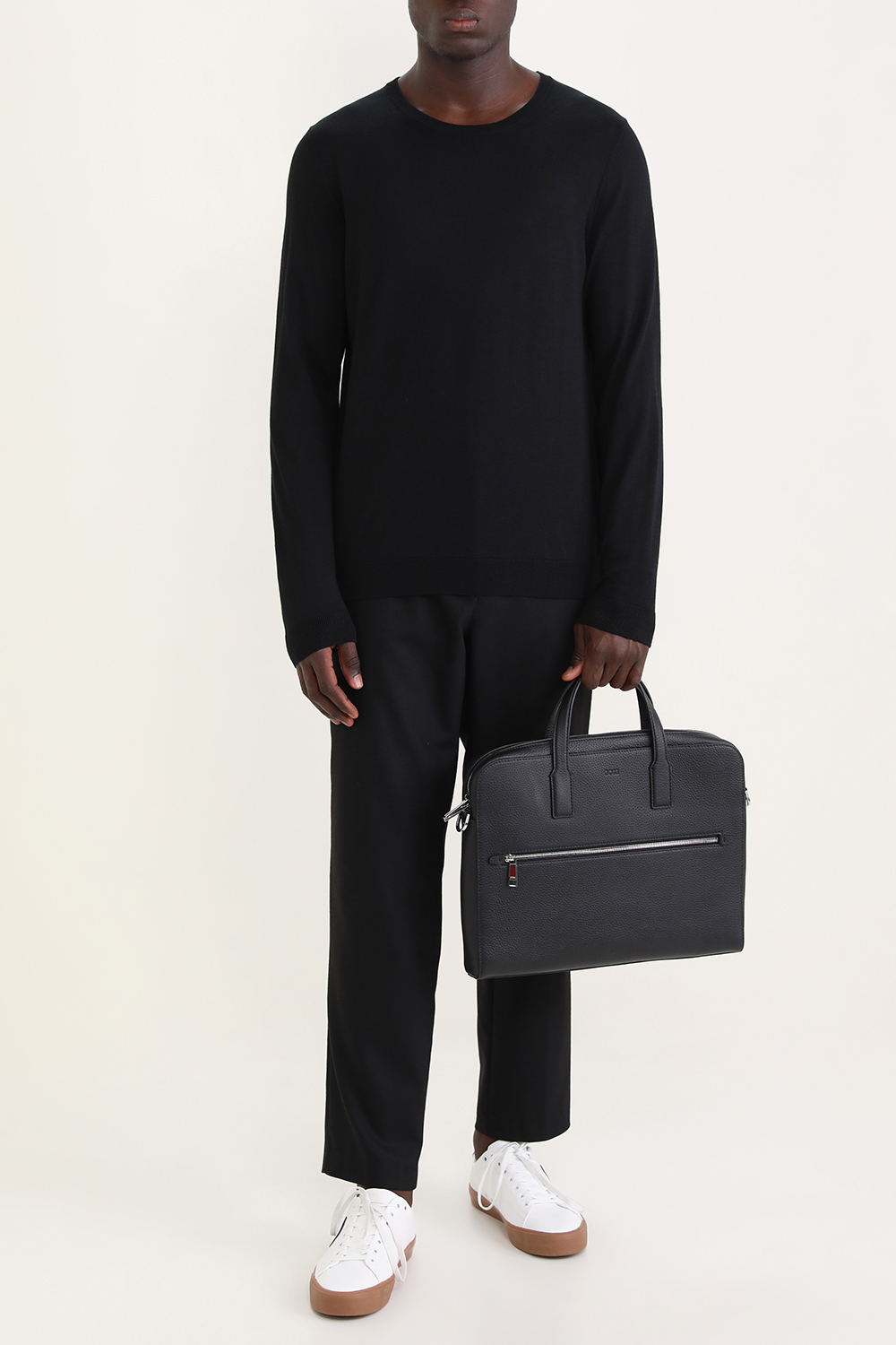 חולצת סריג מבית Hugo Boss, העשויה מצמר משובח בגוון כחול כהה. לפריט גזרה סלים ארוכה ומחמיאה עם צווארון מעוגל, ולו מראה סרוג עדין וקלאסי.