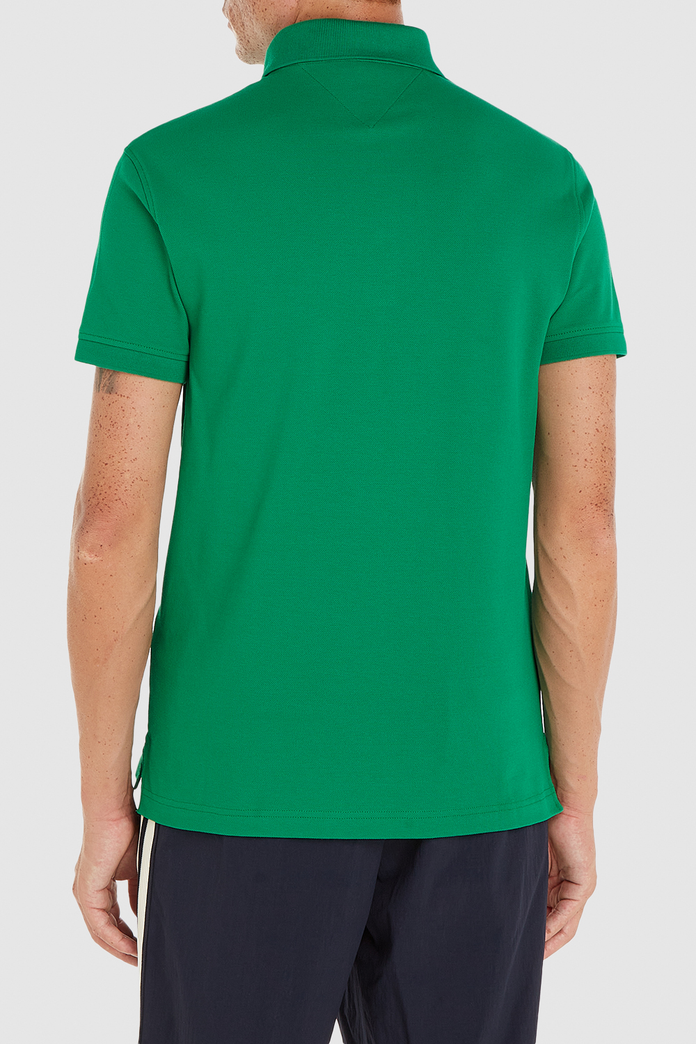 חולצת פולו בגזרת סלים מבית Tommy Hilfiger, עשויה כותנה אורגנית ואלסטן בצבע ירוק עם רקמת לוגו בחזית.