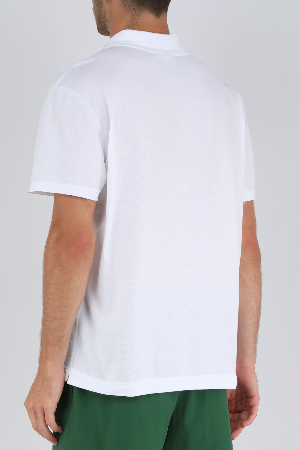 חולצת פולו משובחת היא פריט מפתח בכל מלתחה גברית. החולצה של בית האופנה הצרפתי לקוסט עשויה מתערובת כותנה מעט אלסטית עם שני כפתורי רכיסה טונאליים וצווארון בחיתוך משולש לכדי גזרה מחמיאה ונינוחה בגוון לבן. סמל התנין האייקוני רקום בחוט ירוק ומעטר את צידי החזה. מדובר בפריט קלאסי ואלגנטי שחותם את סגנונו של המותג.