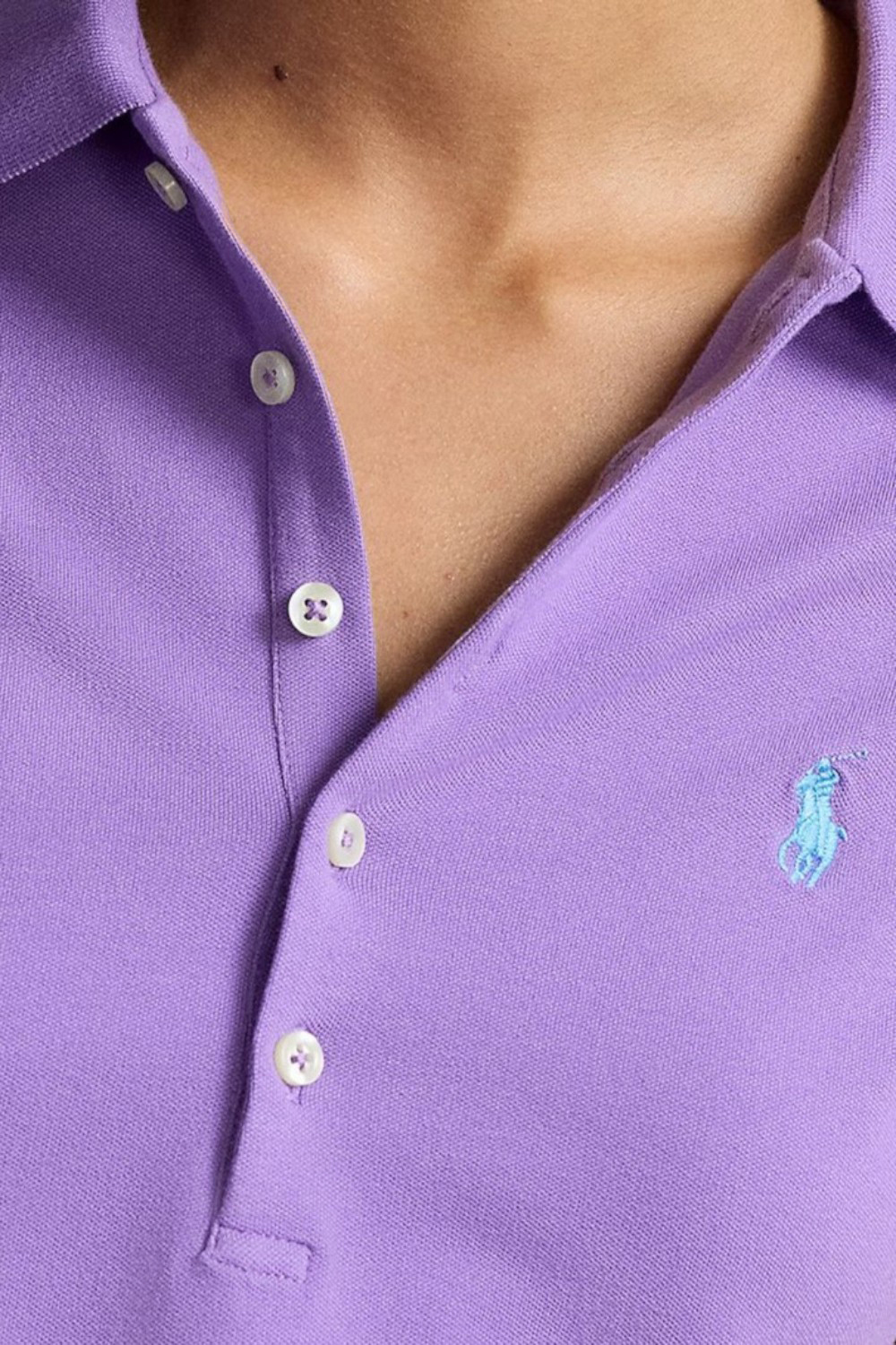 חולצת פולו בגזרת סלים מבית Polo Ralph Lauren, עשויה כותנה בצבע סגול עם סמל הפולו בתכלת.