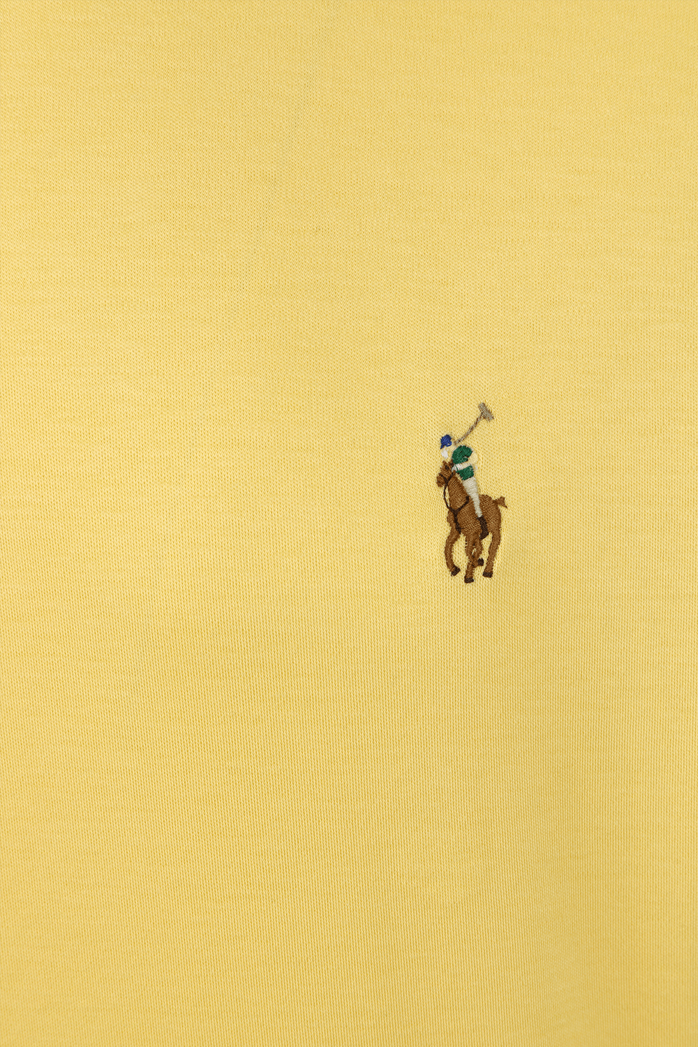 חולצת פולו מבית Polo Ralph Lauren. זהו דגם העשוי 100% כותנה איכותית בגוון צהוב כאשר לוגו המותג רקום על צד החזה. לפריט גזרה ישרה עם צווארון פולו קלאסי ושרוולים קצרים.