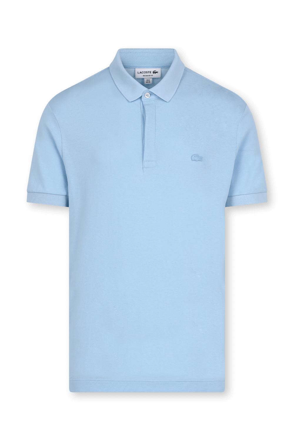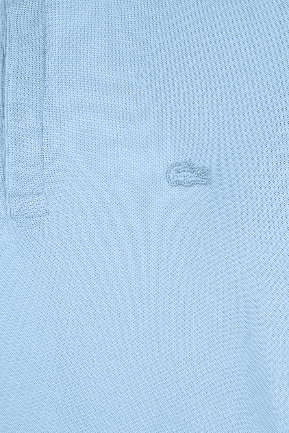 חולצת פולו מבית Lacoste, העשויה כותנה איכותית ומעט גמישה בגוון תכלת עדין, כאשר לוגו המותג רקום בצד החזית בעיצוב טון-על-טון מובלט. לפריט גזרה ישרה ומחמיאה עם צווארון פולו קלאסי, בעל כפתור עילי בולט ופאנל רכיסה נסתר המכיל שלושה כפתורים נוספים.