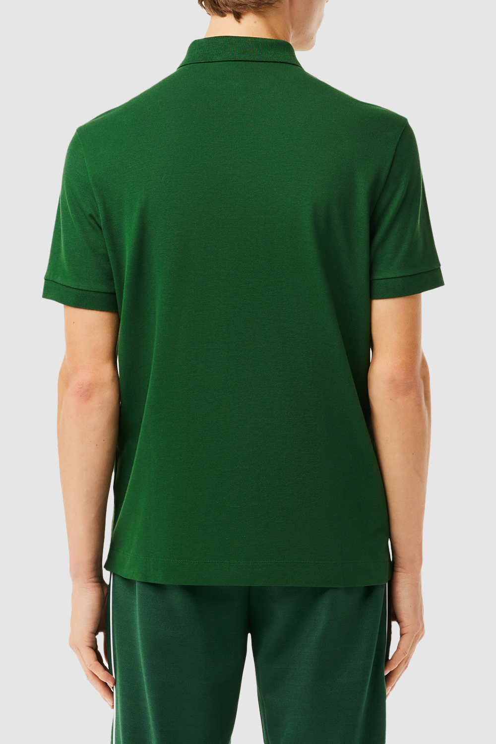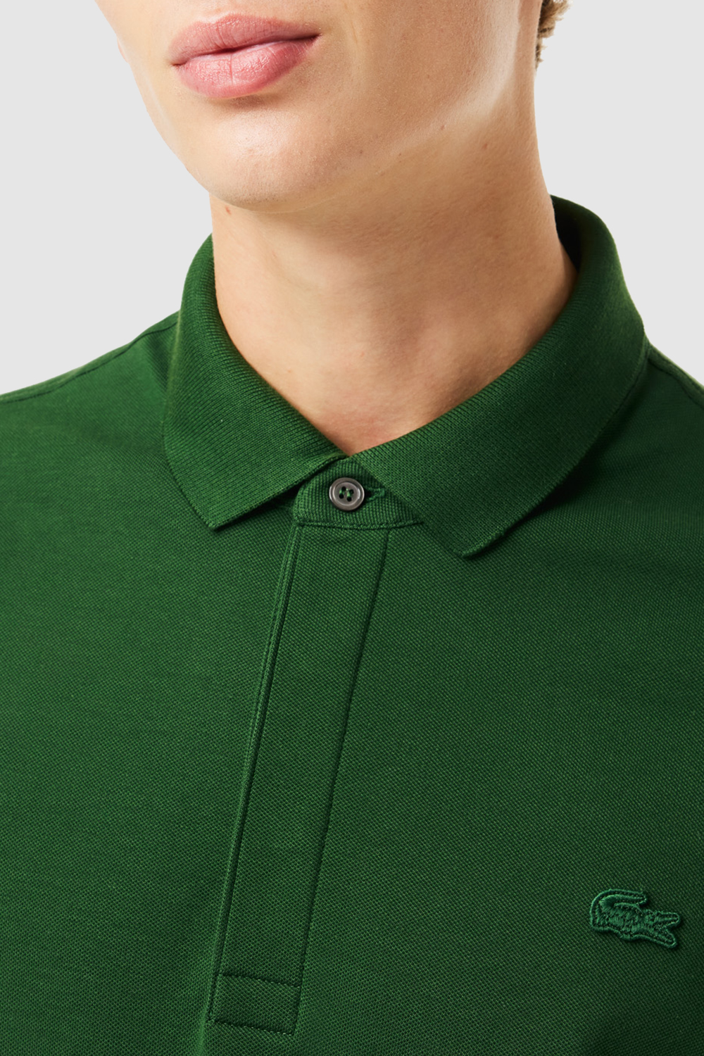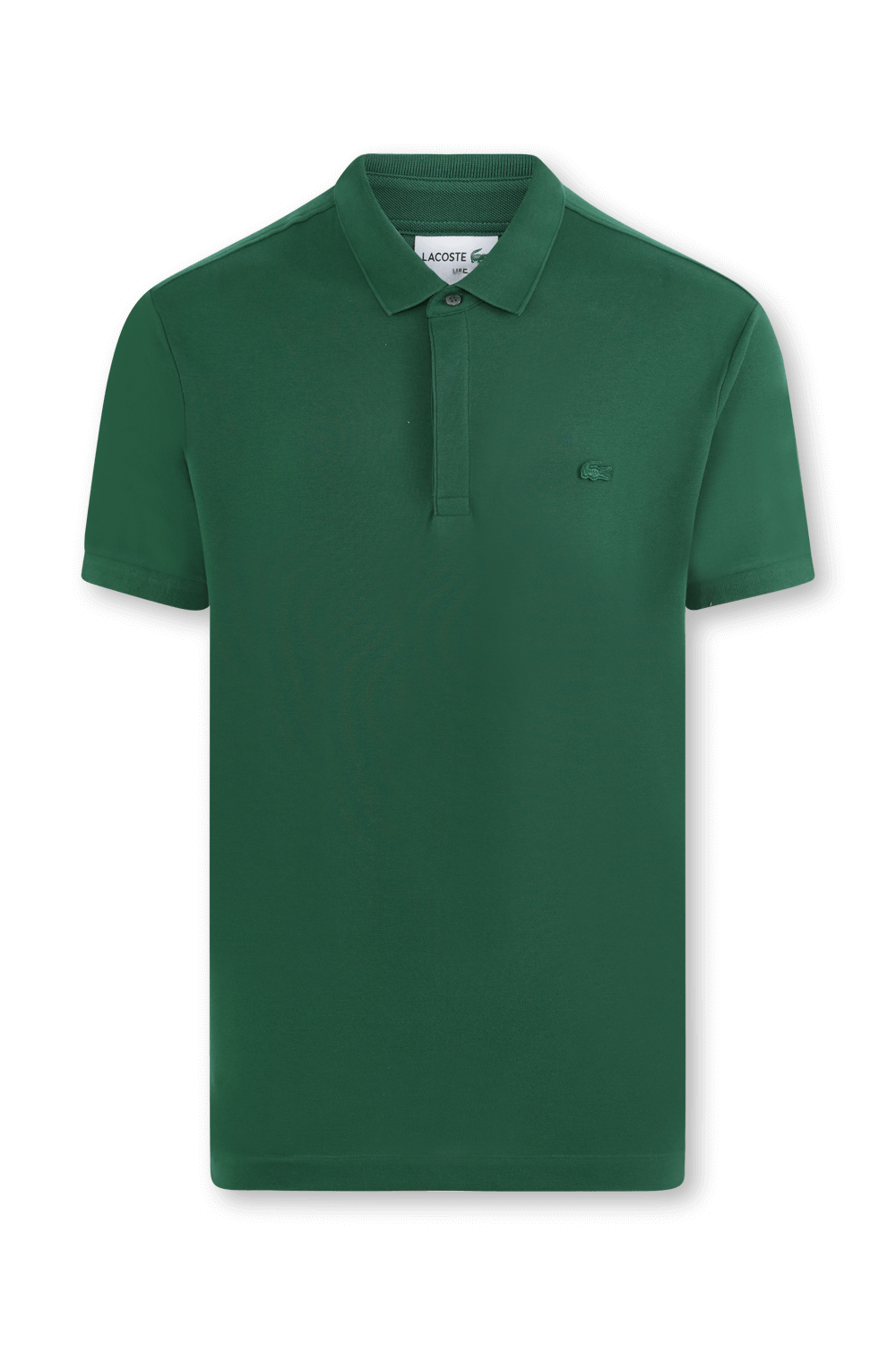 חולצת פולו קצרה מבית Lacoste, עשויה כותנה בצבע ירוק בשילוב פאץ' לוגו המותג בצד החזה.