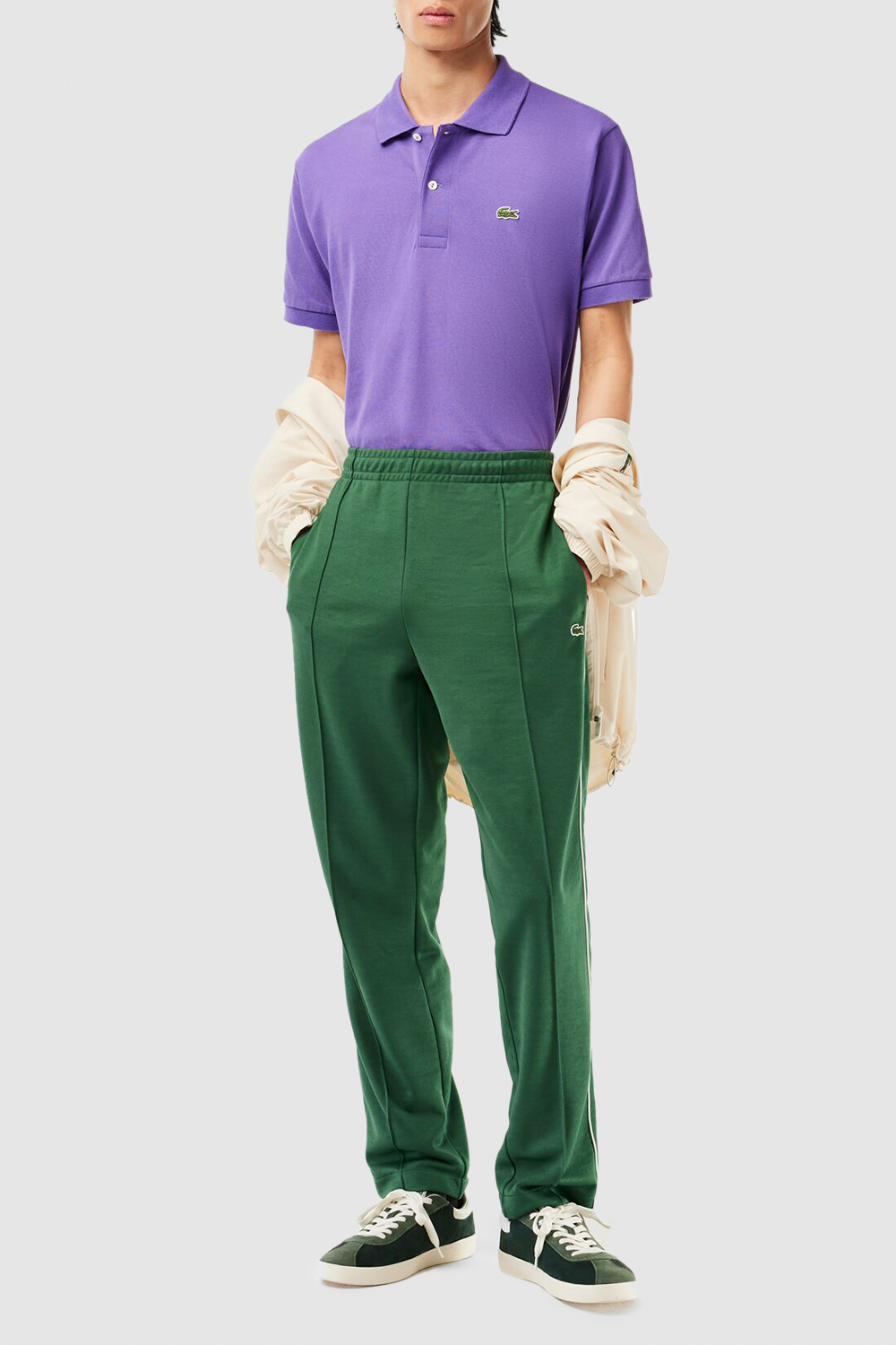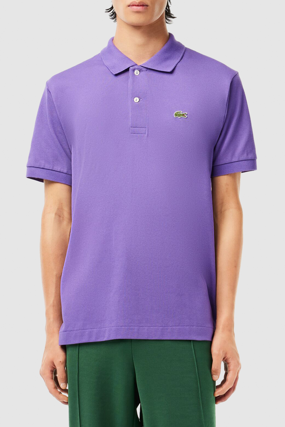 חולצת פולו קצרה מבית Lacoste, עשויה כותנה בצבע סגול בשילוב רקמת פאץ' לוגו המותג בצד החזה. החולצה מעוצבת בהשראת חולצת הפולו המקורית שהומצאה על ידי רנה לקוסט בשנת 1933.