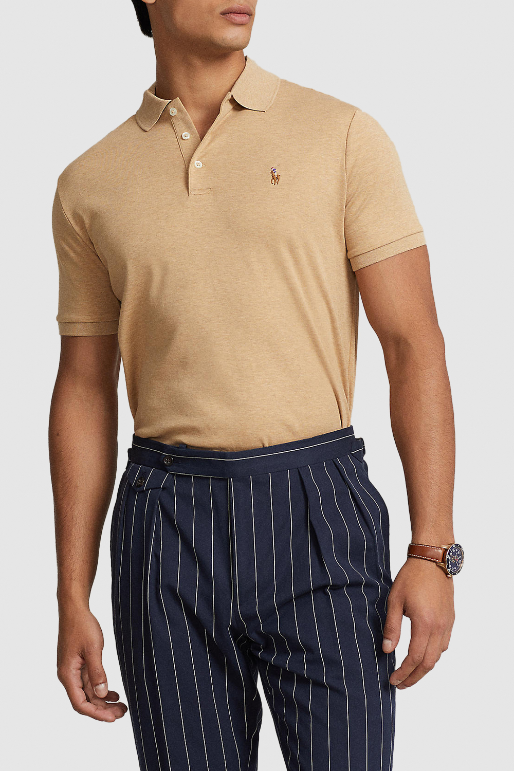 חולצת פולו קצרה מבית Polo Ralph Lauren, עשויה כותנה בצבע חום עם הטבעת לוגו המותג בצד החזה.