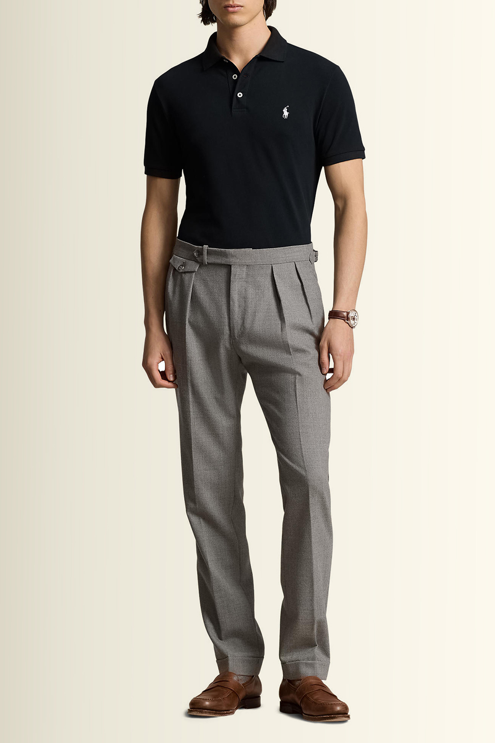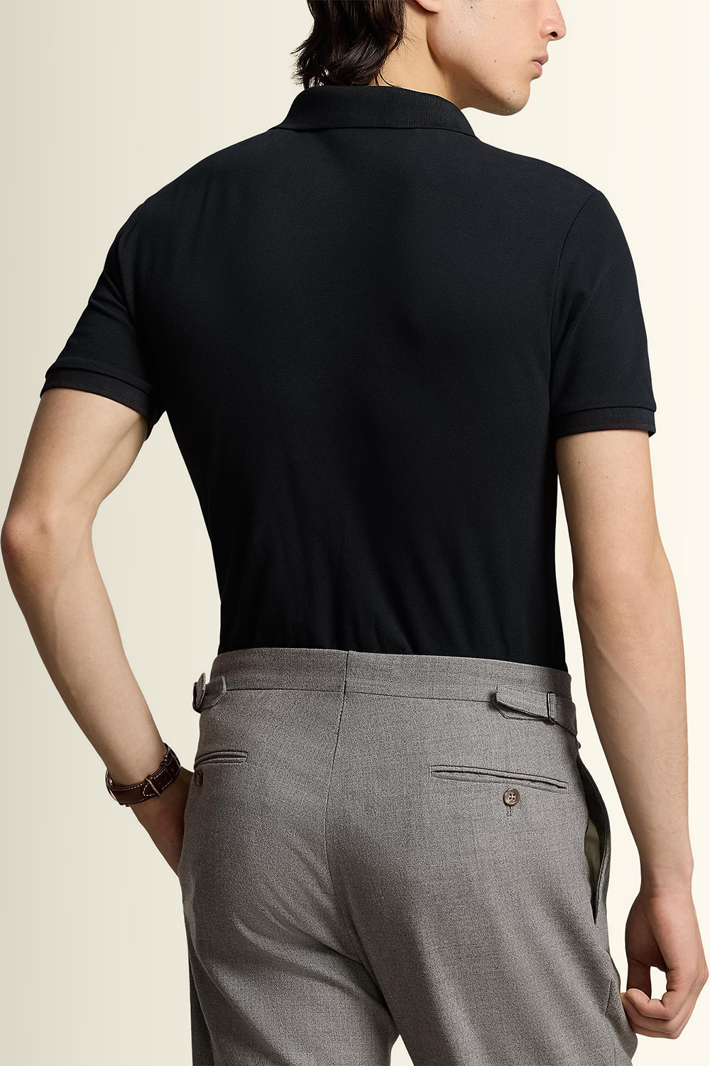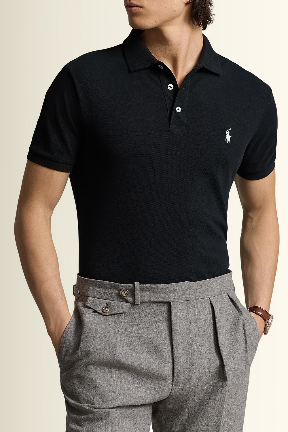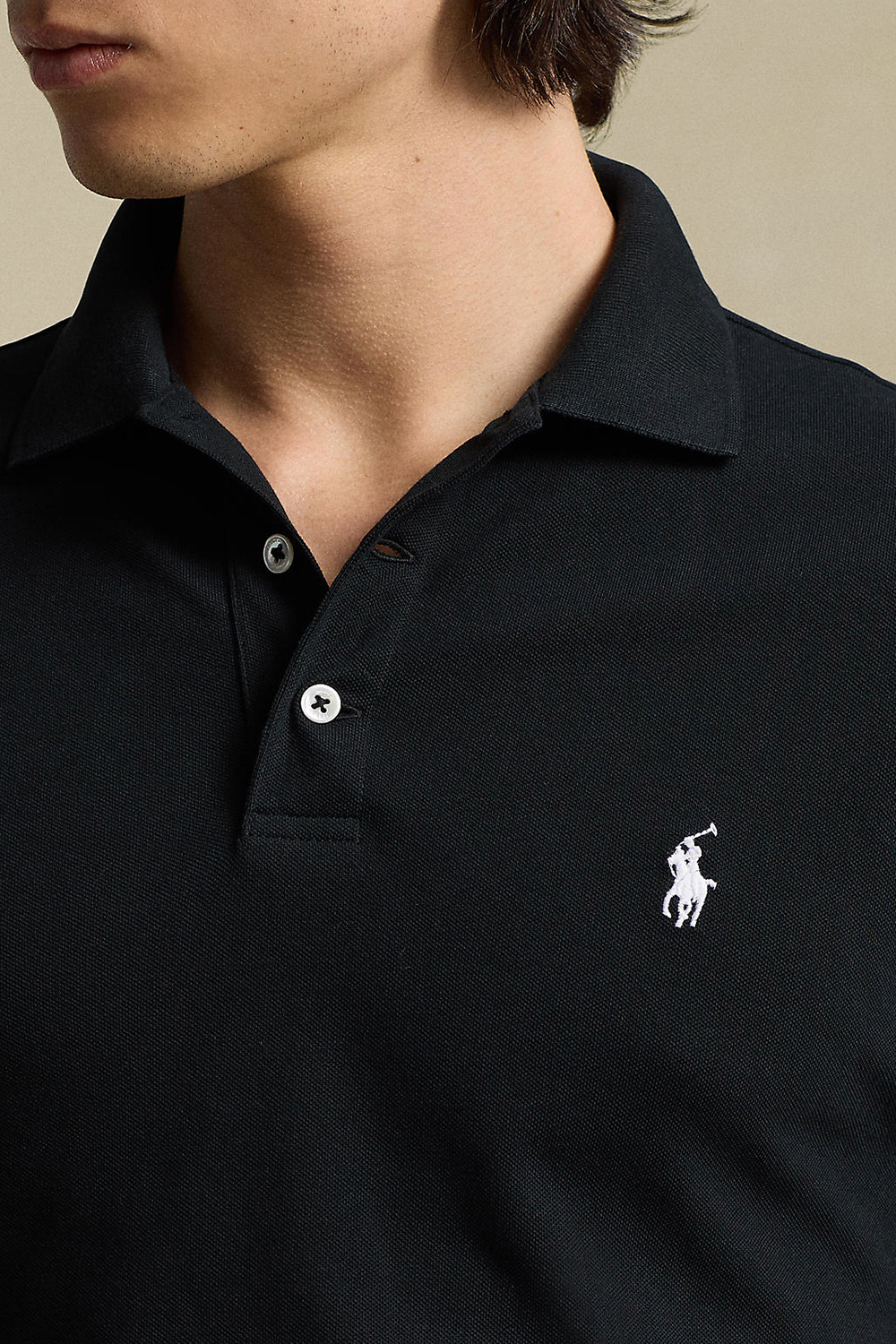 חולצת פולו קצרה מבית Polo Ralph Lauren, עשויה תערובת כותנה ואלסטן בצבע שחור בשילוב רקמת לוגו המותג בצד החזה.