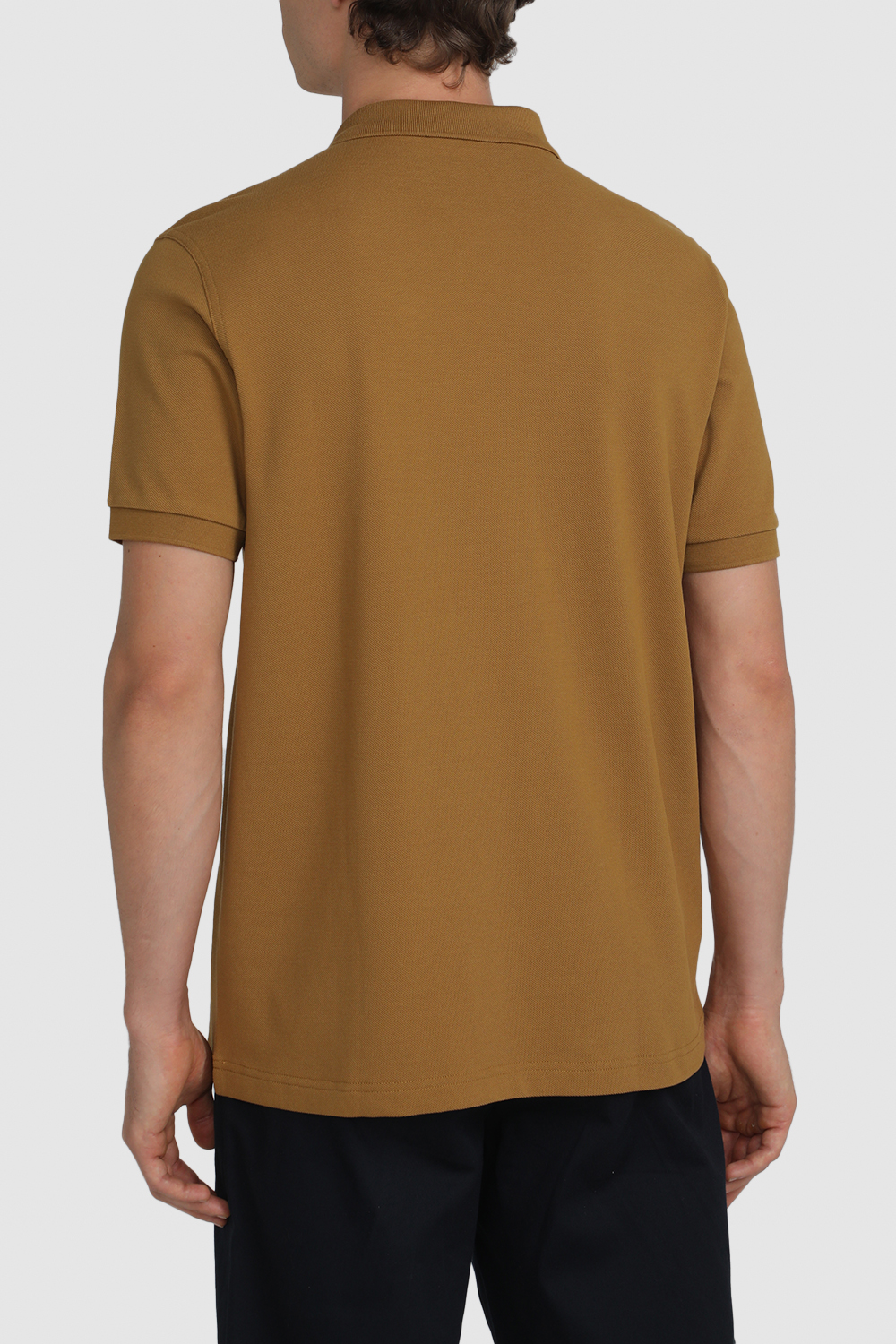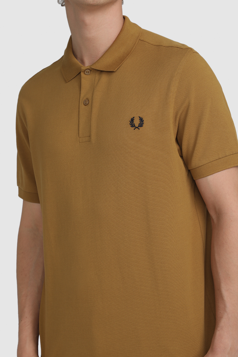 חולצת פולו קצרה מבית Fred Perry, עשויה כותנה בצבע חום עם רקמת לוגו המותג בצד החזה.