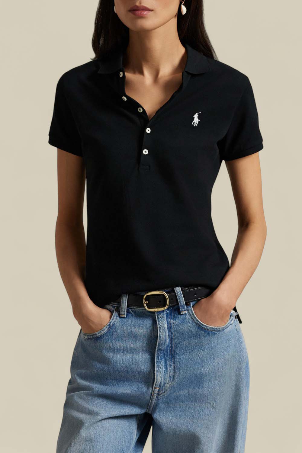 חולצת פולו מבית Polo Ralph Lauren, עשויה כותנה בצבע שחור עם רקמת לוגו לבנה בחזה וגזרת סלים. חולצה אייקונית שאפשר לשלב עם הכל ותמיד תראה קלאסית.