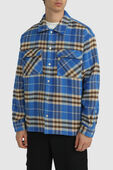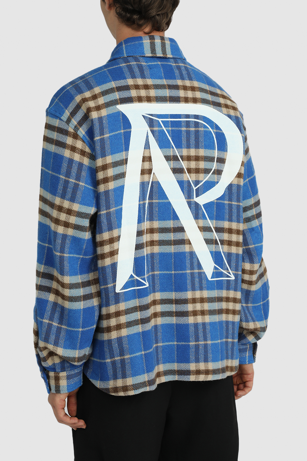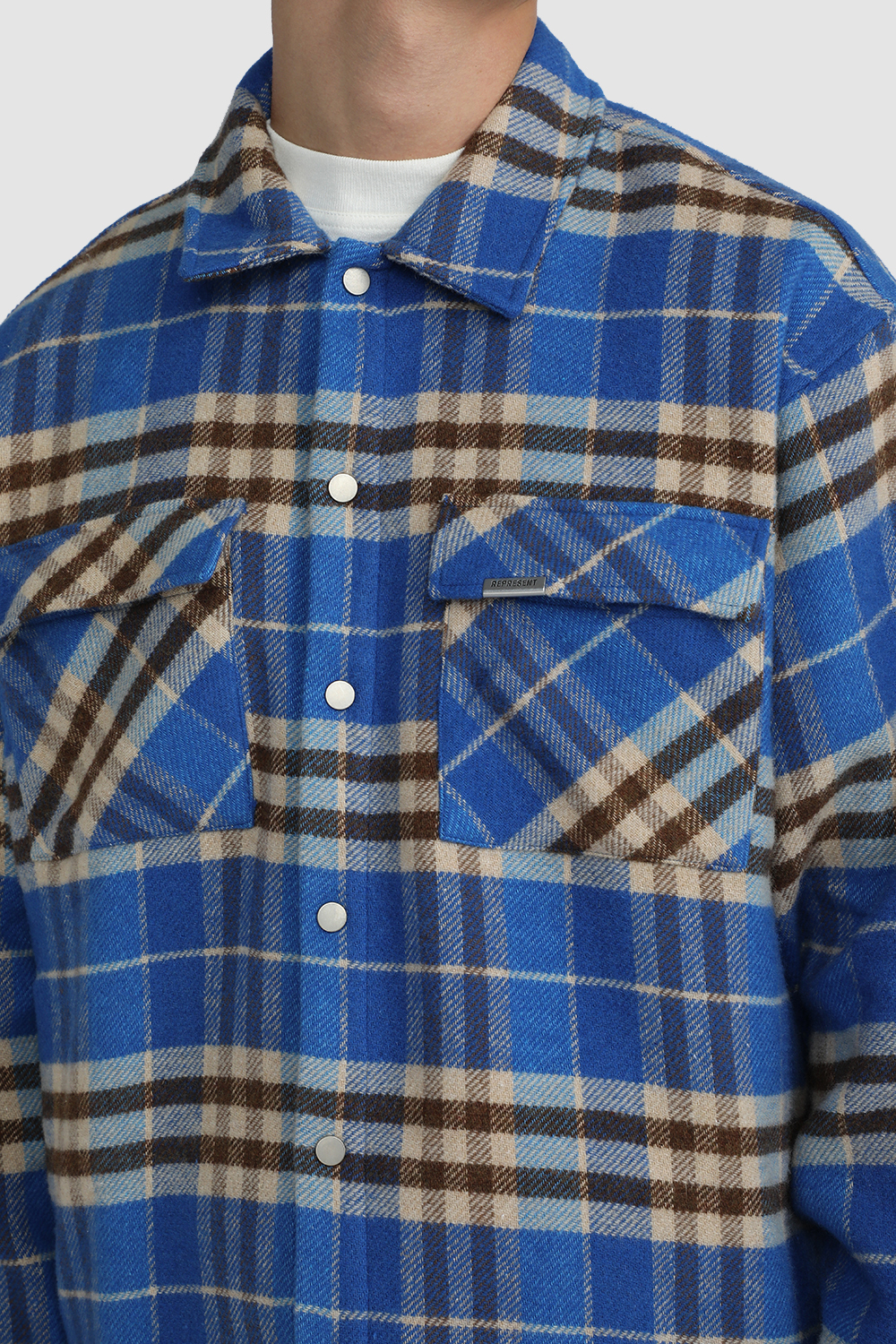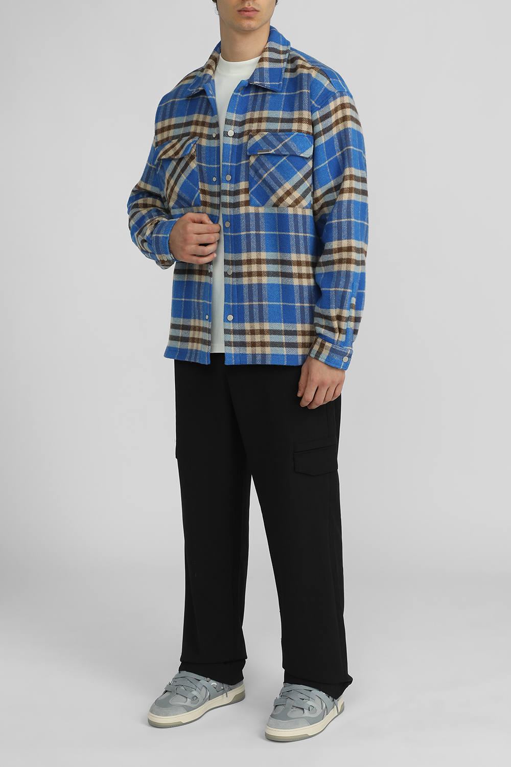 חולצת פלנל מבית Represent, עשויה תערובת צמר, כותנה ופוליאמיד בעיצוב משבצות בצבעי כחול, חום ובז`. לחולצה כפתורי תיק תק בחזית בשילוב שני כיסי חזה.