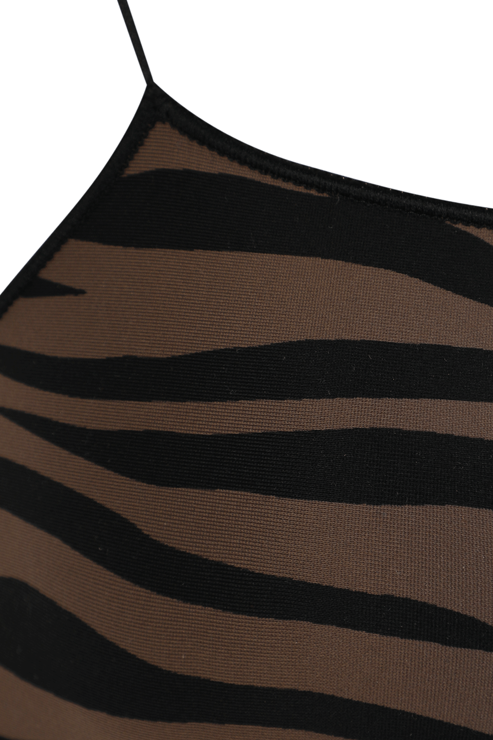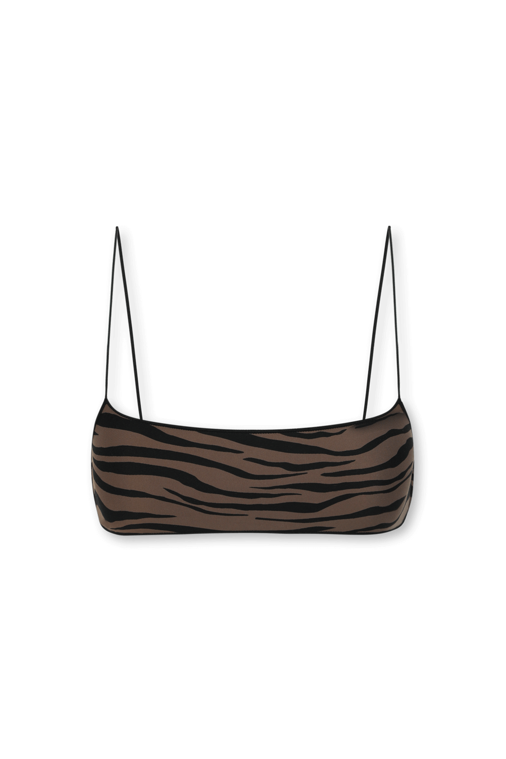 חזיית ביקיני ברלט C מתוך הקולקציה החדשה של המותג האקולוגי Tropic of C בעיצובה של דוגמנית-העל קנדיס סוונפול. המותג מתאפיין בגזרות ובצלליות מחמיאות המיוצרות מתוך אהבה לעולם שלנו והוא כבש את מלתחת החוף של אושיות סטייל רבות. הפריטים מיוצרים מחומרי גלם המשקפים את המוטו הדוגל בקיימות ובשמירה על הסביבה. זהו טופ של ביקיני בדוגמת זברה בגוון חום עם פסים בגוון שחור העשוי בד סטרצ'י המקנה מתיחה מרבית על הגוף. הדגם מעוצב בגזרה ישרה בשילוב כתפיות דקות. פריט שישתלב נפלא עם תחתונים תואמים בצבע זהה ליצירת סט עדכני לימי הקיץ.