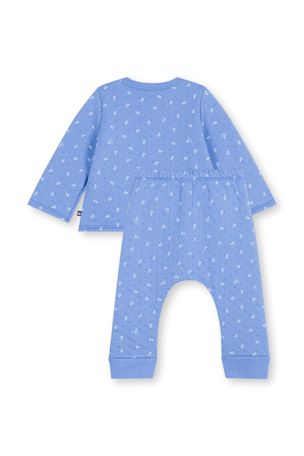 חליפת ז'קט ומכנסיים מבית Petit Bateau, עשויים תערובת כותנה בצבע כחול בהדפס עוגן חזרתי.