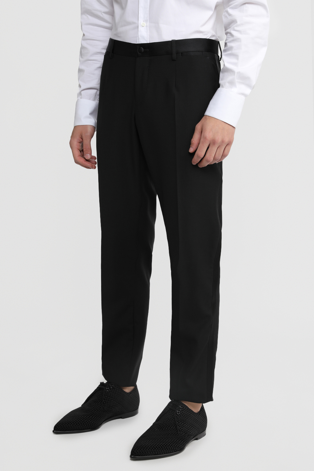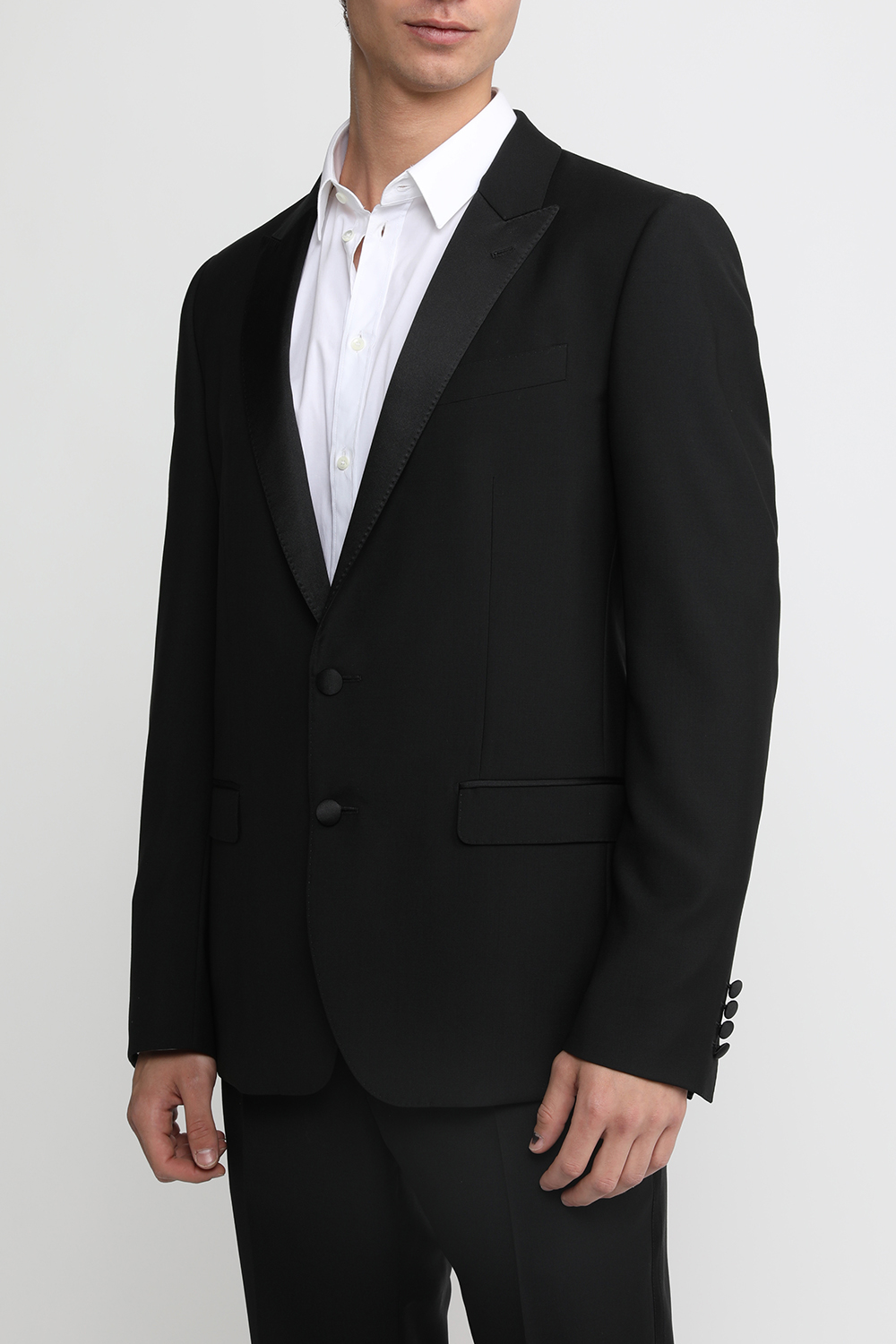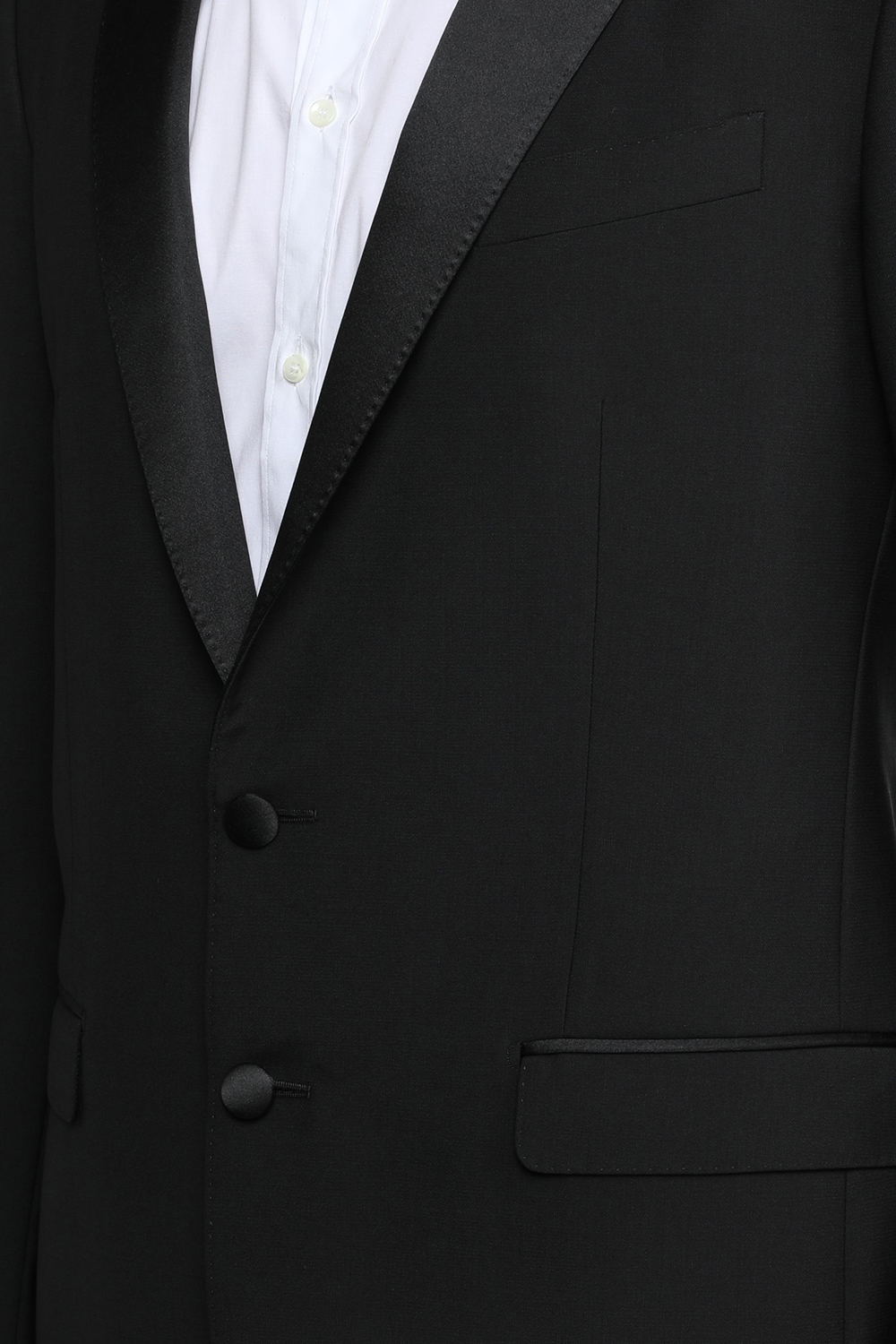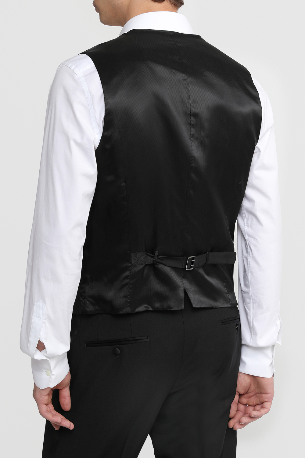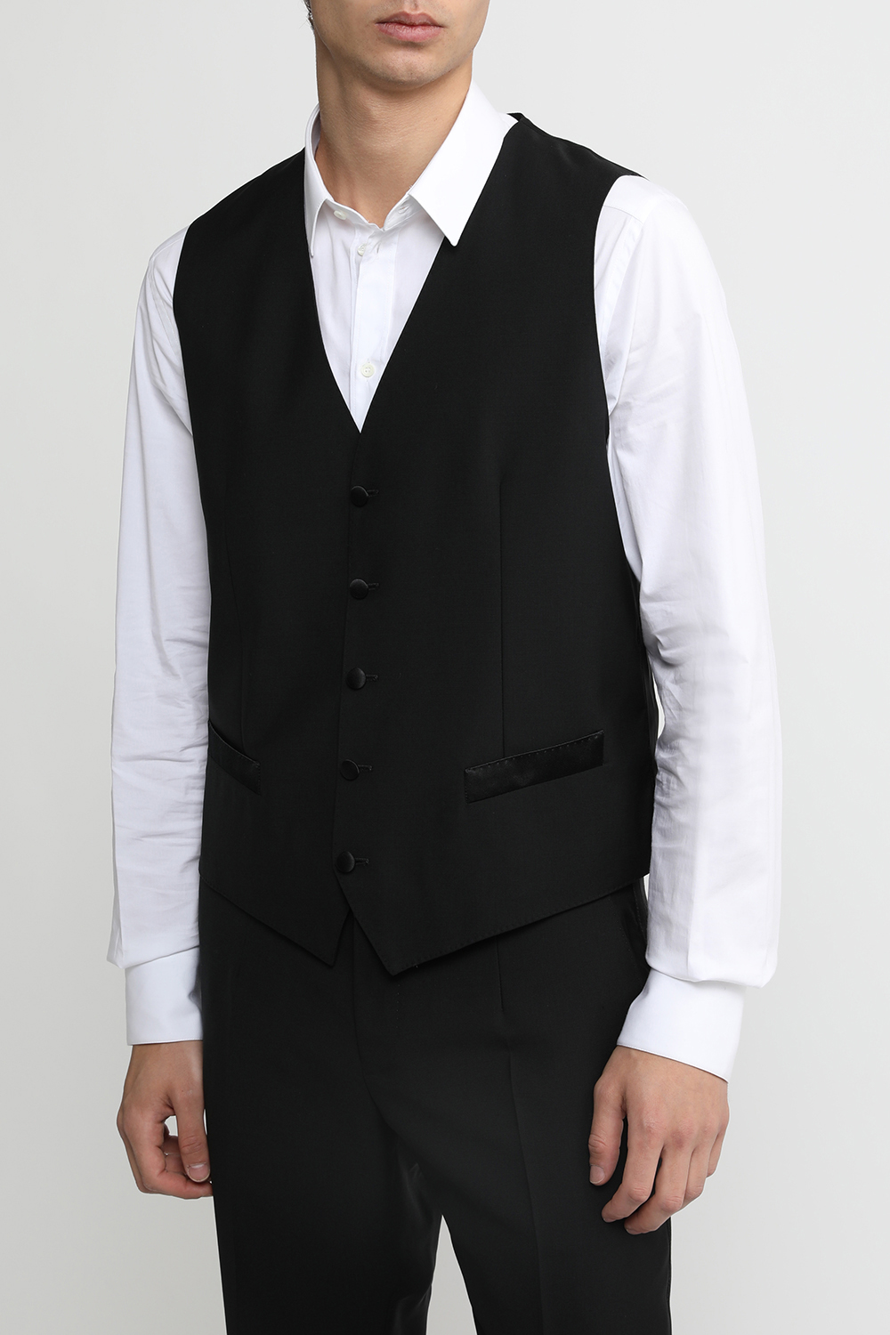 חליפת שלושה חלקים בצבע שחור מבית Dolce&Gabbana. החליפה עשויה מצמר אלסטי. הסט כולל מכנסיים מחויטים, בלייזר תואם ווסט מחויט. החליפה בגזרת סלים מחמיאה.