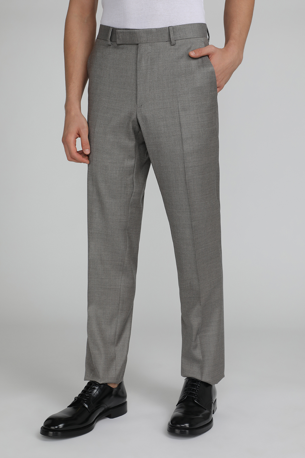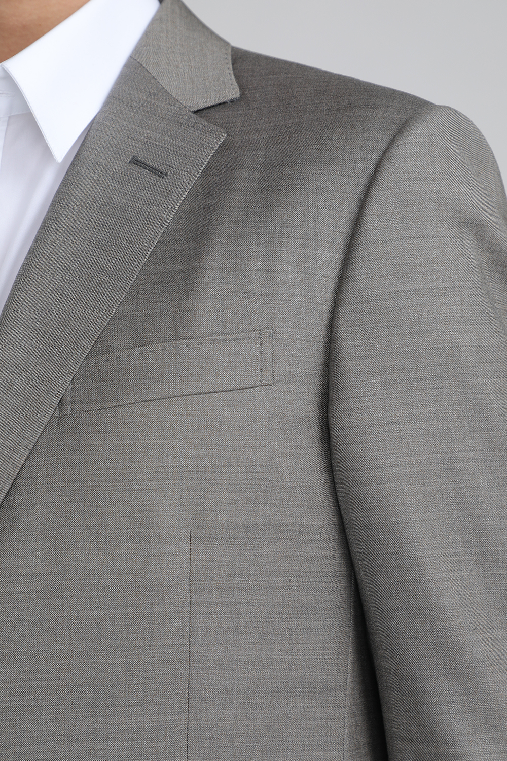 חליפת שני חלקים מבית Zegna, עשויה תערובת צמר, ליוסל ואלסטן בצבע אפור וכוללת בלייזר מחויט עם שני כפתורים לסגירה בחזית ושני כיסי צד בשילוב מכנסיים מחויטים בגזרה ישרה.