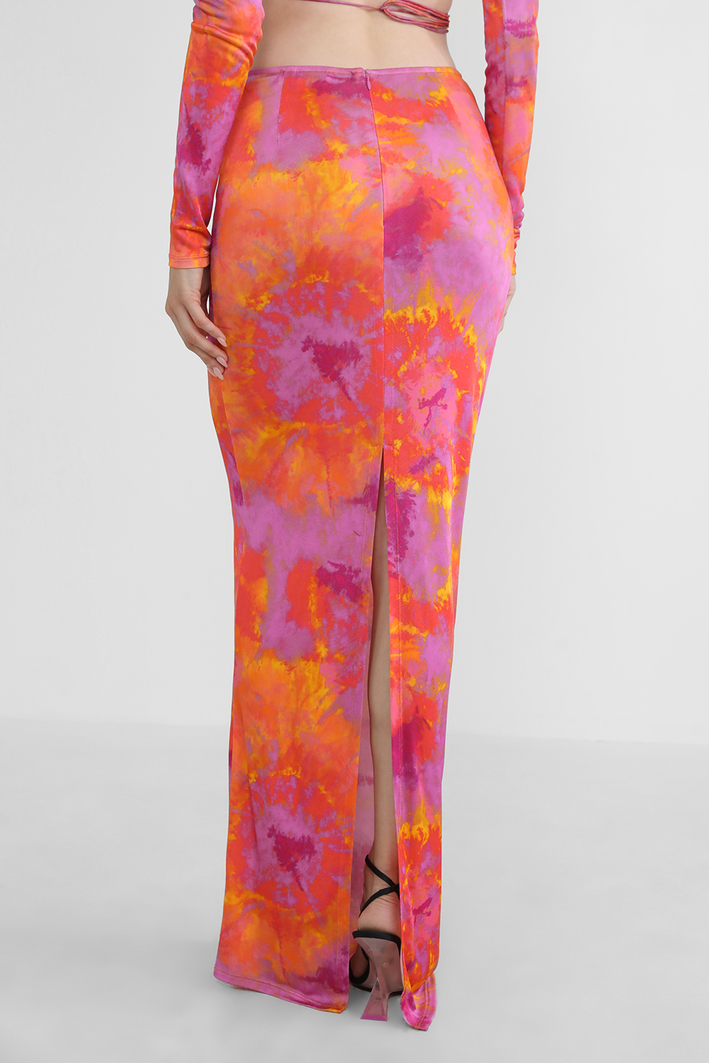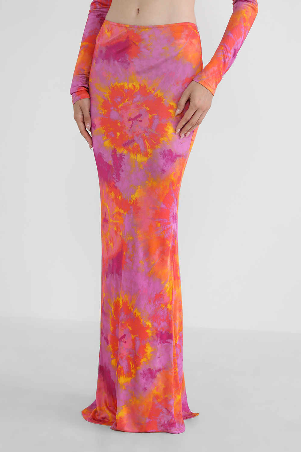 חצאית מקסי עשויה ויסקוזה ופוליאסטר.