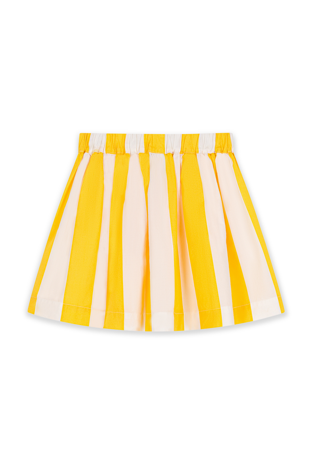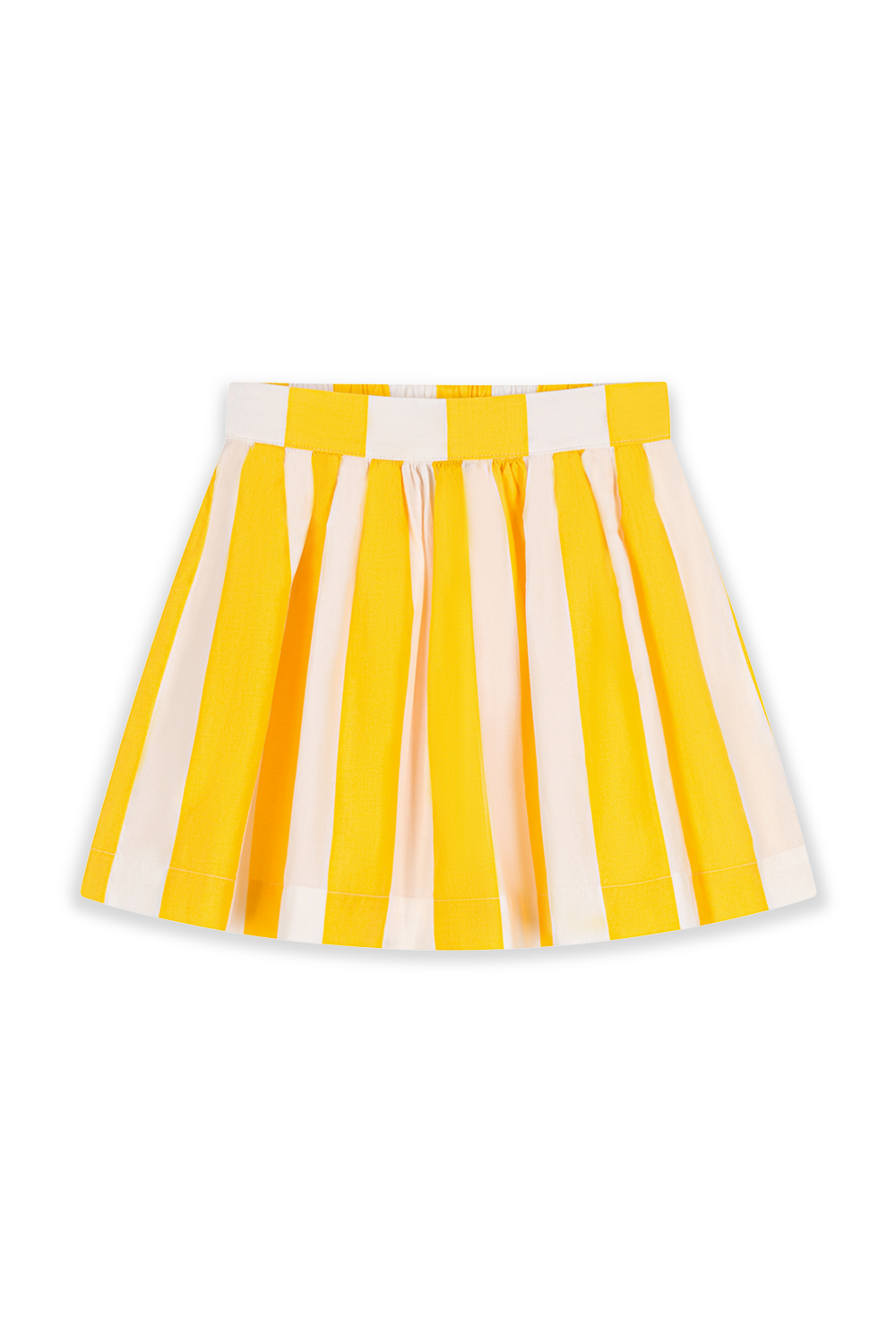 חצאית קייצית מבית Petit Bateau, עשויה כותנה בהדפס פסים צהוב-לבן עם חגורת מותניים אלסטית.