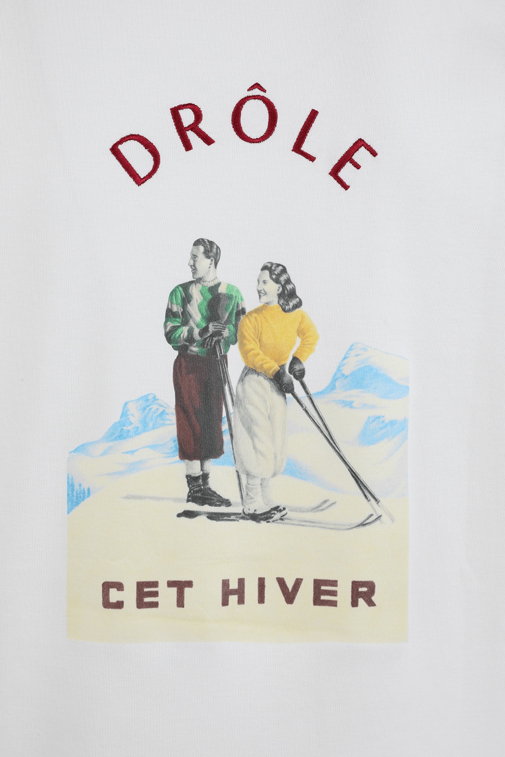 המותג הצרפתי היוקרתי המבוסס על טהרת הספורט קז`ואל DROLE, נחת בפקטורי 54. המותג מביא איתו סטייל ייחודי המשלב בין האסתטיקה של שנות ה-70 והנוסטלגיה של שנות ה-90, לבין הצרכים המודרניים והיומיומיים של זמננו. זוהי טי שירט העשויה 100% כותנה איכותית בגוון לבן עם הדפס ממותג על החזית. לפריט גזרה ישרה ונינוחה עם צוארון מעוגל ושרוולים קצרים. מדובר בפיס שיקי במיוחד ליצירת לוקים קוליים ועתירי סטייל.