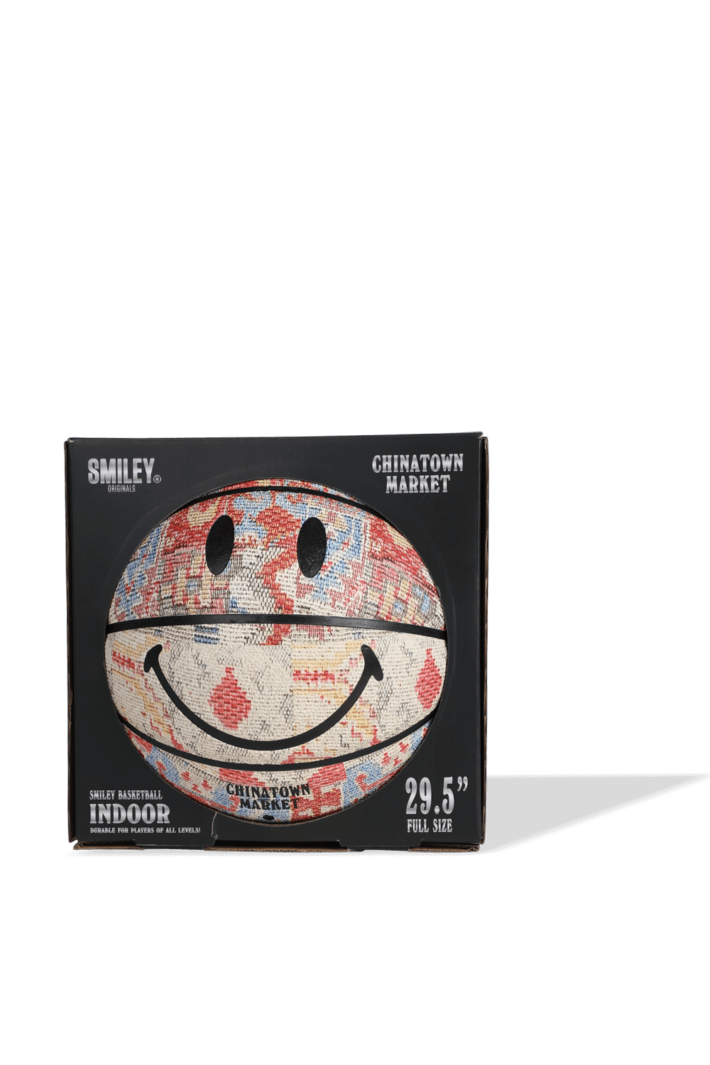 שיתוף הפעולה הרשמי והמגניב של סמיילי עם מותג הסטריט וור CHINATOWN MARKET השואב השראה מרחובות ניו יורק ומסצנת הסקייטרים הרותחת של סן פרנסיסקו מציג כעת - כדור כדורסל צבעוני. פריט זה עשוי מטקסטיל איכותי בגימור המדמה שטיח רקום בגוונים רבים כמו לבן, אדום, כחול, כתום ועוד למראה חמים ומתוחכם. דמות הסמיילי האייקונית חותמת את עיצובו הרותח של פריט אספנים מושלם זה.