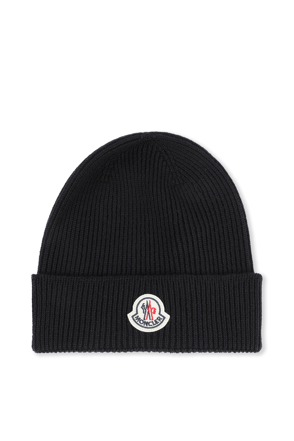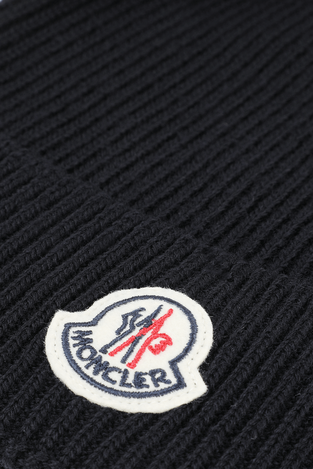 כובע גרב מבית מונקלר. זהו דגם העשוי 100% צמר בגוון כחול. לפריט צללית קלאסית עם שוליים מקופלים כאשר תגית ממותגת התפורה לחזית חותמת את עיצובו השיקי והטרנדי.