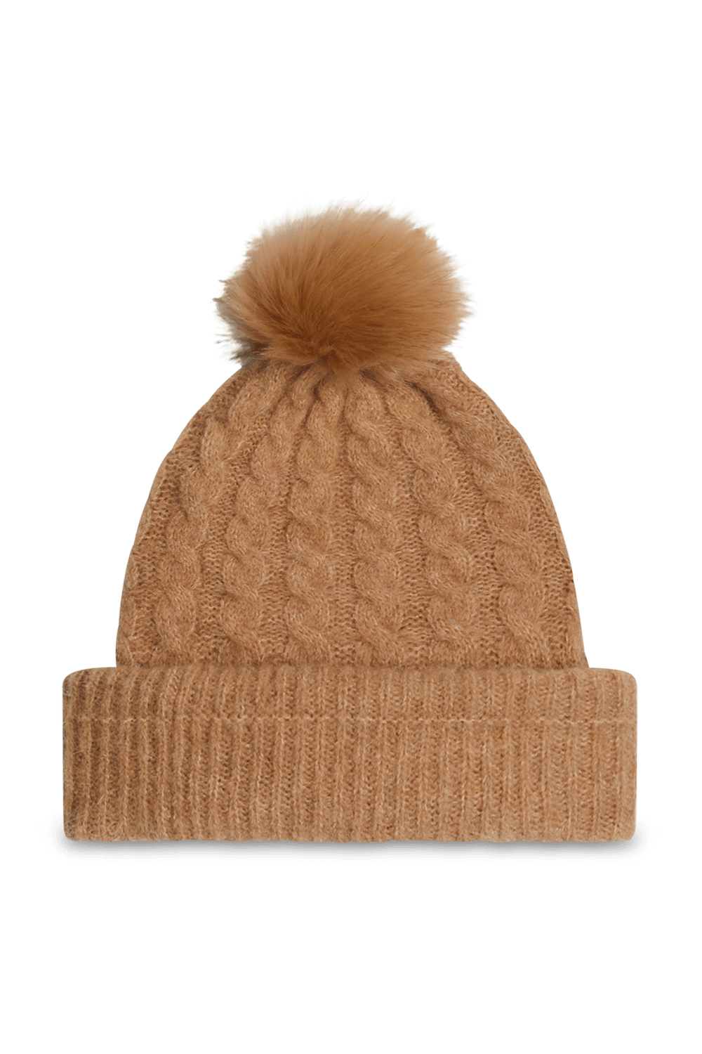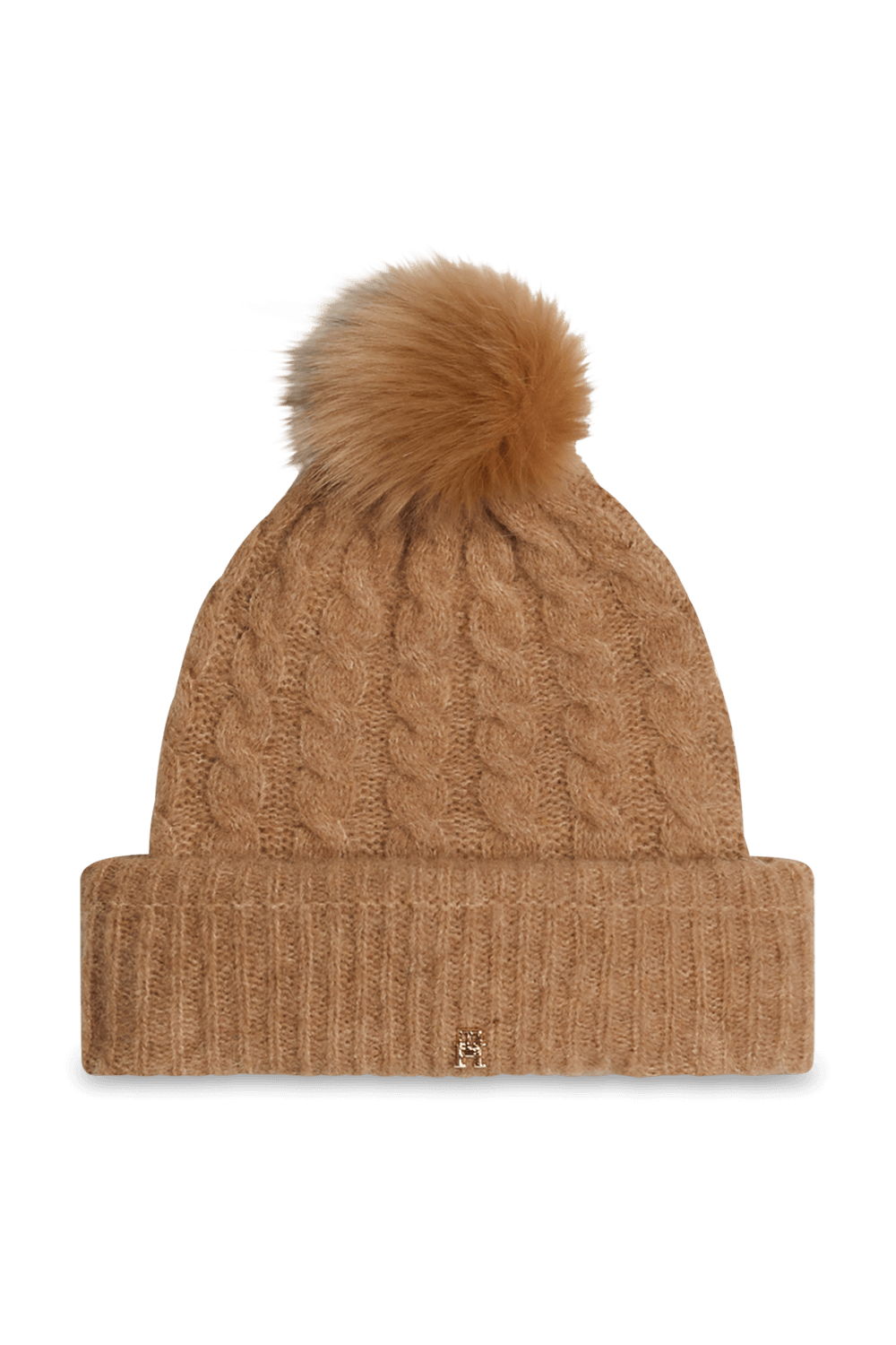 כובע גרב מבית Tommy Hilfiger, תוצרת איטליה, עשוי תערובת אקריליק, פוליאמיד וצמר במרקם פרוותי סרוג בצבע חום ובסיומת פונפון.