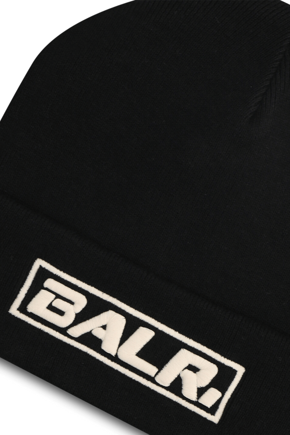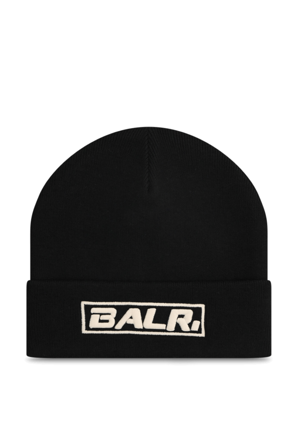 כובע גרב מבית Balr, עשוי תערובת כותנה וצמר בצבע שחור בשילוב פאץ' לוגו המותג במרכז.