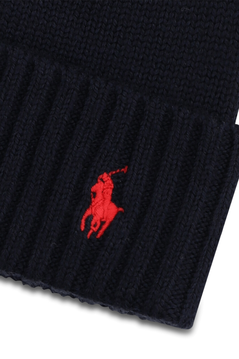 כובע גרב מבית Polo Ralph Lauren, עשוי צמר בצבע שחור עם רקמת לוגו בצבע אדום בחזית.