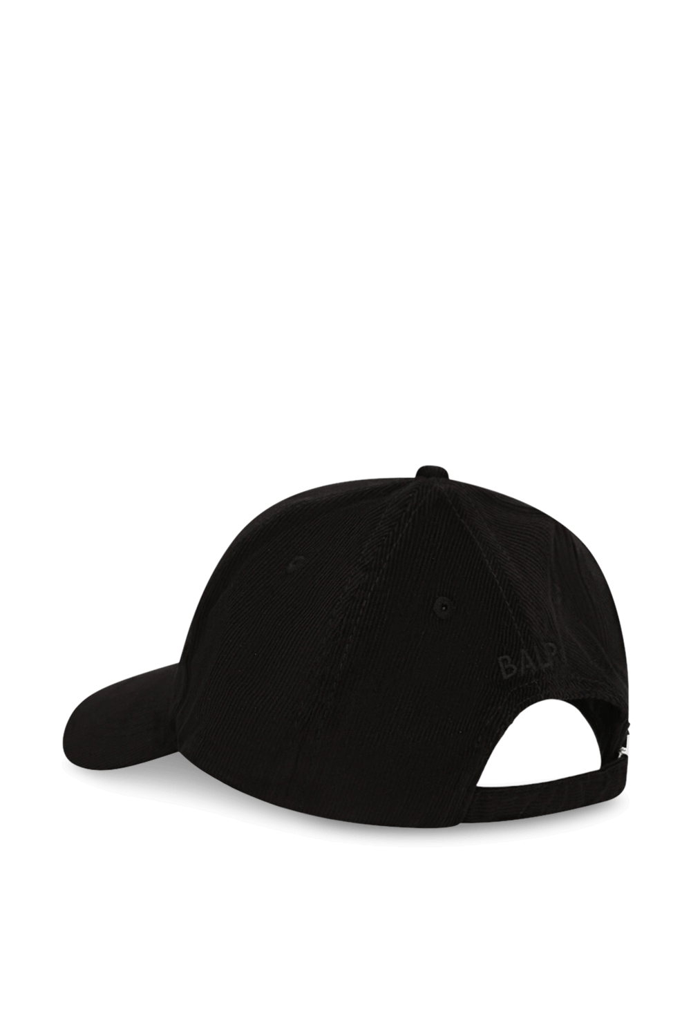 כובע מצחייה מבית Balr, עשויה כותנת דנים בצבע שחור, עם רקמה מלפנים וסוגר מאחור להתאמת גודל.