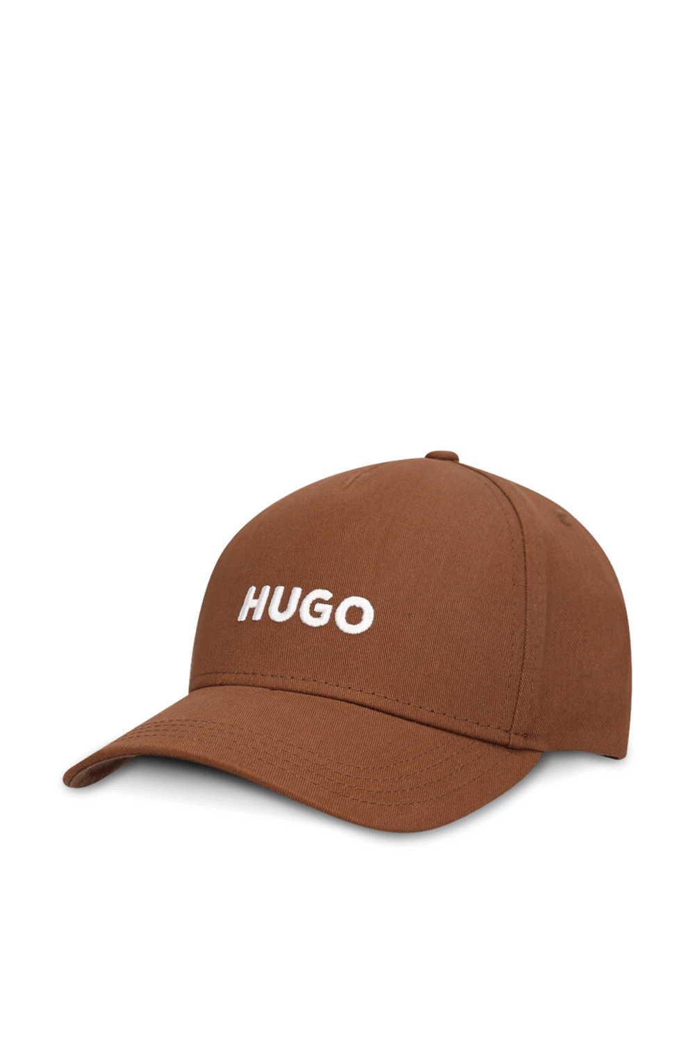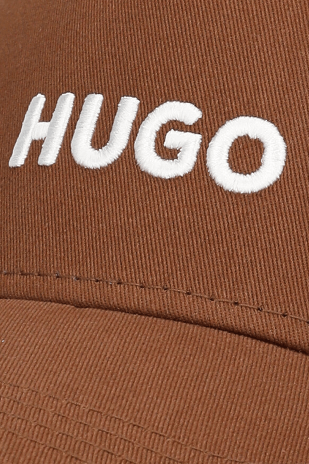 כובע מצחייה מבית Hugo, עשוי כותנה בצבע חום בשילוב רקמת לוגו המותג במרכז עם רצועה אחורית מתכווננת.