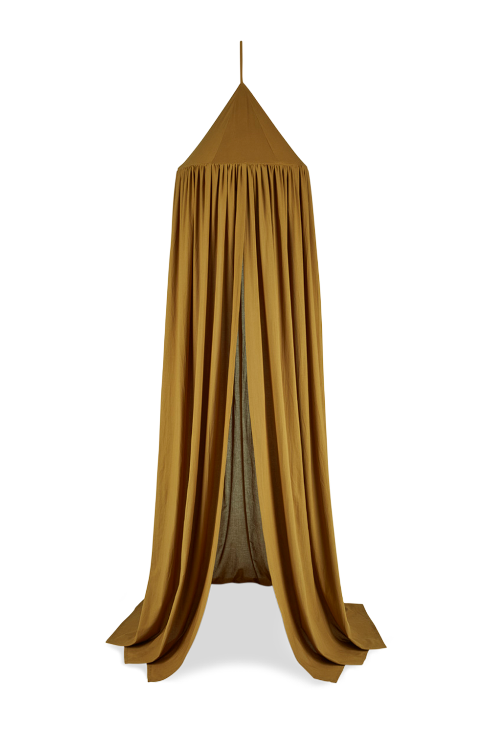 כילה יפהפייה מדגם Enzo לתלייה מעל המיטה או בפינת המשחקים בצד החדר, מבית Liewood, עשויה כותנה אורגנית בגוון ירוק זית ובצללית עגולה. זהו פריט שופע בד, ועם זאת קליל ויציב כך שילדכם ירגישו מוגנים ועטופים ברכות.