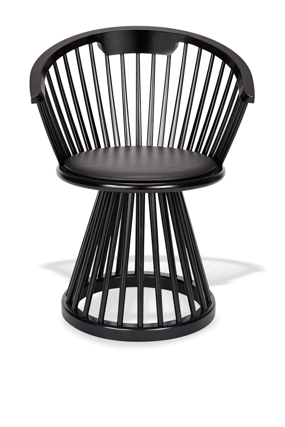 טום דיקסון נחשב כיום לאחד המובילים והמבוקשים ביותר בסצנת העיצוב העולמית. לדיקסון מוניטין מפואר ונושא פרסים יוקרתיים- ופריטיו שהפכו לאייקונים- מוצגים במוזאונים הגדולים ברחבי העולם. עבודותיו מאופיינות בפונקציונאליות מודרנית ובמינימליזם צורני מתוחכם והן משלבות עושר חומרי. זהו כיסא אוכל מעץ בגוון שחור והוא נכלל בסדרת ה- Fan- אשר כוללת מגוון כיסאות ושולחנות המעוצבים כמניפה והמהווים טייק מודרני לכיסא וינדזור הקלאסי. לכיסא מבנה מאוורר התופס מסה ויזואלית מינימלית ביחס לגודלו והוא כולל מושב עור שחור ומרופד לצד גב מעוגל למקסימום תמיכה ונוחות. מדובר באובייקט מפוסל ומרשים שיקפיץ בקלות את פינת האוכל או כל חלל אחר שתבחרו.