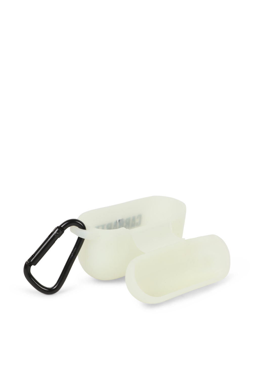 כיסוי לוהט לאוזניות איירפודס בעיצוב מותג הסטריט הרותח קארהארט. זהו דגם בגוון לבן שקוף העשוי סיליקון גמיש עם כיתוב ממותג בשחור המתנוסס בחזית. לדגם זה אבזם מתכתי שחור המאפשר חיבור של הכיסוי לחגורה או לתיק לנוחות מקסימלית. מדובר באקססורי סופר קול שישלים את הסטייל שלך ממש עד לפרטים הקטנים.